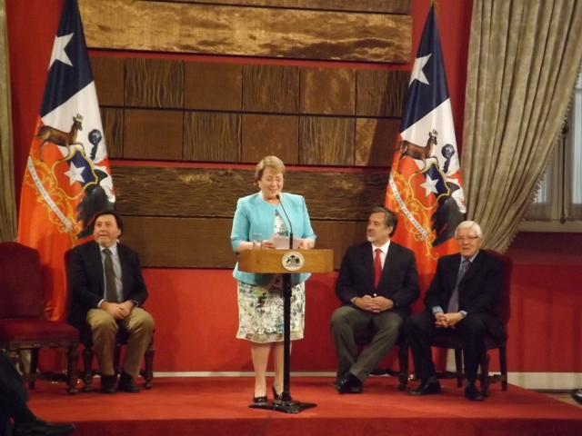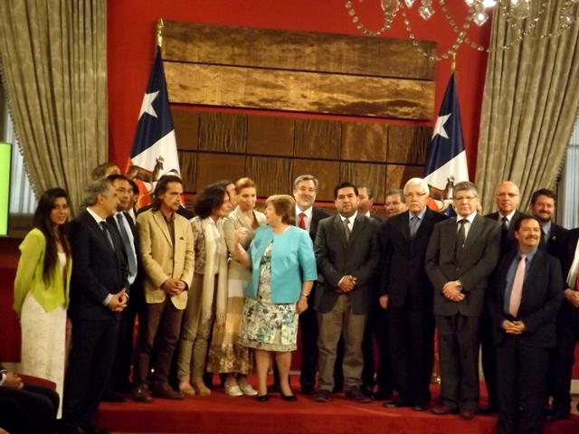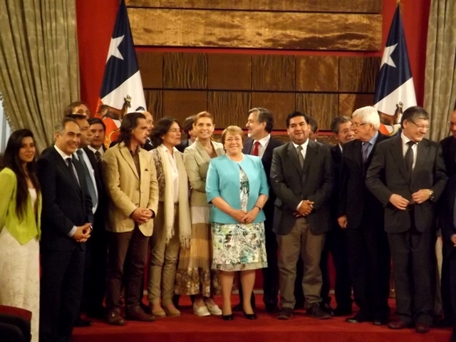 El presidente de la bancada regionalista de senadores, Alejandro Guillier y su par de la bancada regionalista de diputados, Rodrigo González, invitaron a la Presidenta Bachelet a recibir el pliego del Manifiesto por la descentralización de Chile. En el acto participaron también la diputada Andrea Molina, el senador Francisco Chahuán y la Presidenta del Colegio de Arquitectos Pilar Urrejola, quien fue acompañada de miembros de la Delegación Valparaíso.