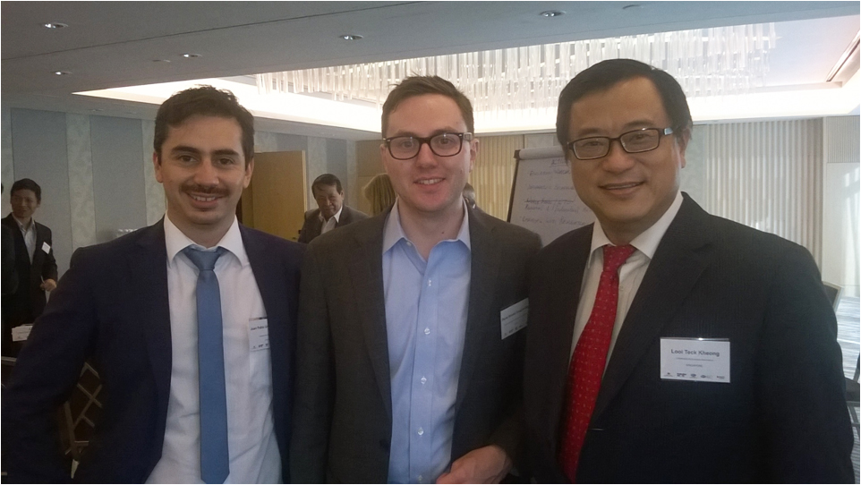 - Juan Pablo Urrutia (Colegio de Arquitectos de Chile), Oscar Douglas (Dirección de Relaciones Económicas Internacionales Ministerio de Relaciones Internacionales) y Teck Kheong Looi (Ocean Financial Centre. Singapore)