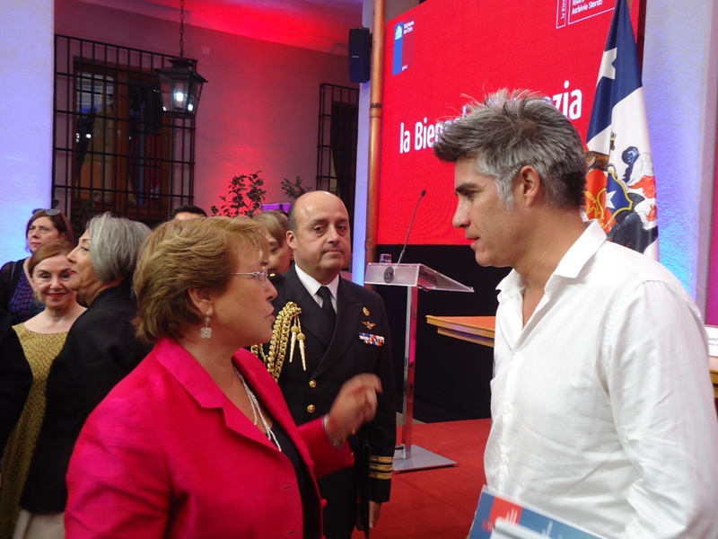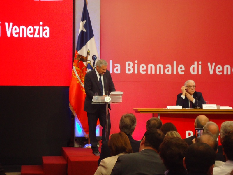 Ambas razones y méritos, fueron suficientes para que la Presidenta de la República Michelle Bachelet decidiera invitarlo a La Moneda el día 2 de marzo, hasta donde llegó junto al Presidente de la Bienal de Venecia -el italiano Pablo Baratta- y desde el Patio de las Camelias, con la presencia de destacados arquitectos y muchos representantes del Colegio de Arquitectos, contaron a todo el país cuales serán los temas y contenidos de esta 15° versión que parte el 28 de mayo y termina el 27 de noviembre. La misma conferencia antes fue realizada en París, Londres, Berlín, Nueva York y por su puesto Venecia.