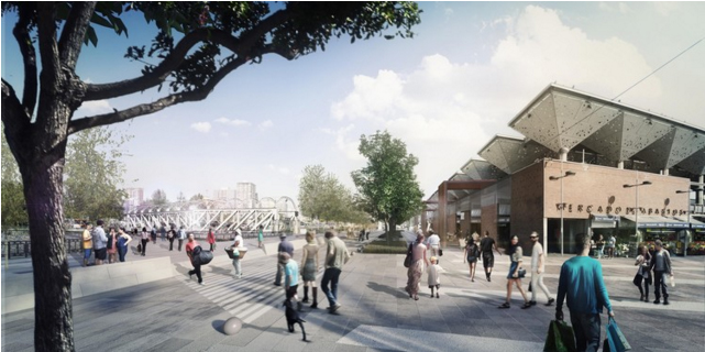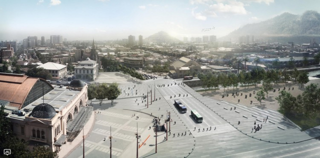 La llamada «explanada de los mercados» apunta a crear un espacio esencialmente peatonal y turístico de 20 hectáreas que conecte los flujos provenientes del norte de Santiago hacia el Mercado Central y la Estación Mapocho por arterias como Independencia y La Paz.