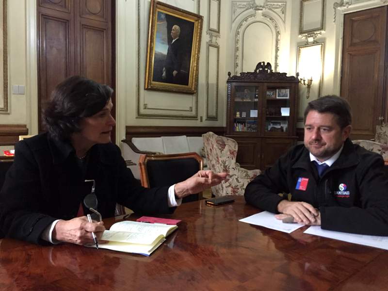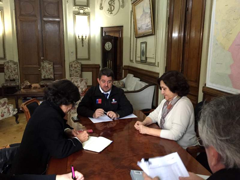 El Intendente de la Región Metropolitana, Claudio Orrego, recibió este miércoles 11 de mayo en una reunión-audiencia a tres autoridades del Colegio de Arquitectos: la Presidenta Pilar Urrejola; la Vicepresidenta de Asuntos Internos, Ximena Bórquez y el Director Nacional Gunther Suhrcke, quienes fueron a exponer distintos proyectos que involucran al gremio y al Colegio de Arquitectos; temas como Fondo Nacional de Desarrollo Regional (FNDR), DOM en línea, Bienal de Arquitectura, entre otros. También fueron a pedir su participación en instancias de la misma institución.