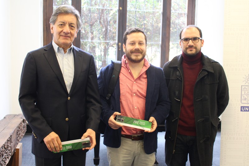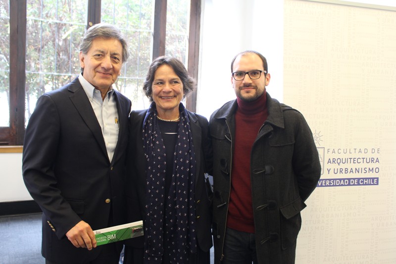 - Pilar Urrejola; Mario Terán, Director del Departamento de Arquitectura FAU; y Mauricio Loyola, Director de la Encuesta Nacional BIM 2016