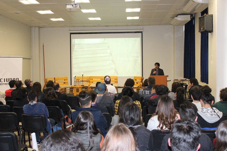 Arquitectos, docentes y estudiantes repletaron el auditorio del edificio VK1 de la Universidad Central (UCEN) el día miércoles 14 de septiembre, para asistir a un encuentro organizado por el colectivo de arte y arquitectura Ciudad Atmosférica, y patrocinado por la Escuela de Arquitectura FAUP UCEN.