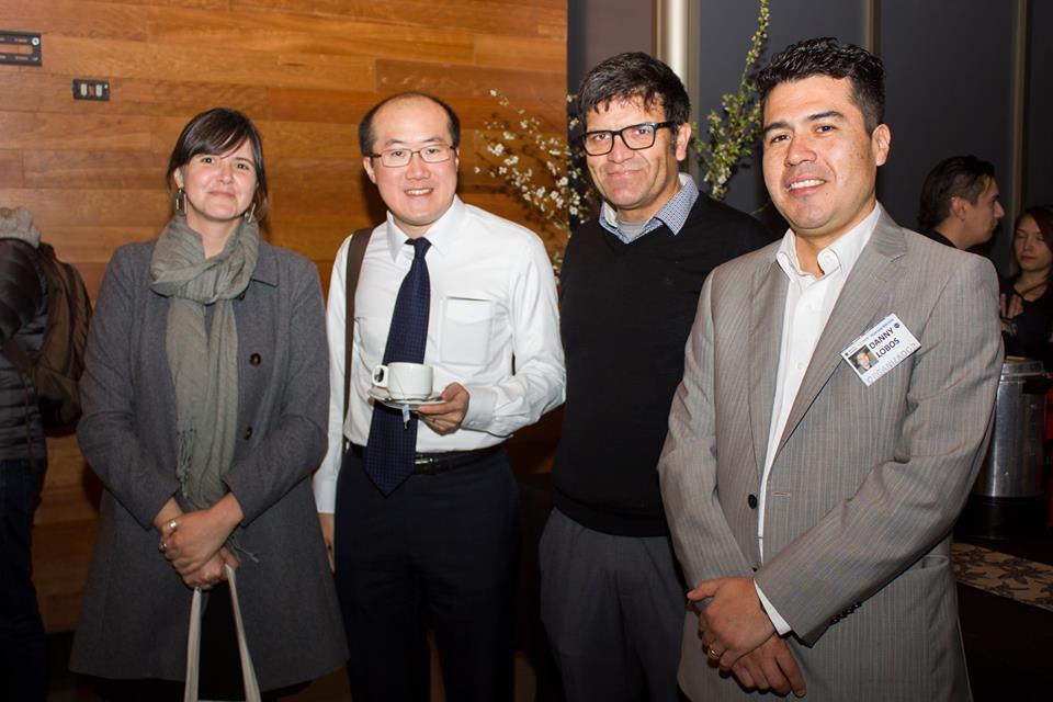 - Hector Lira y Danny Lobos junto al representante del Ministerio de Obras Públicas de Estados Unidos, Calvin Kam; Cesar Ascencio, Gerente de BIM Chile y Felipe Pino de BIM-Chile.