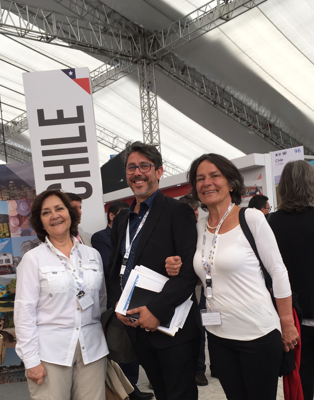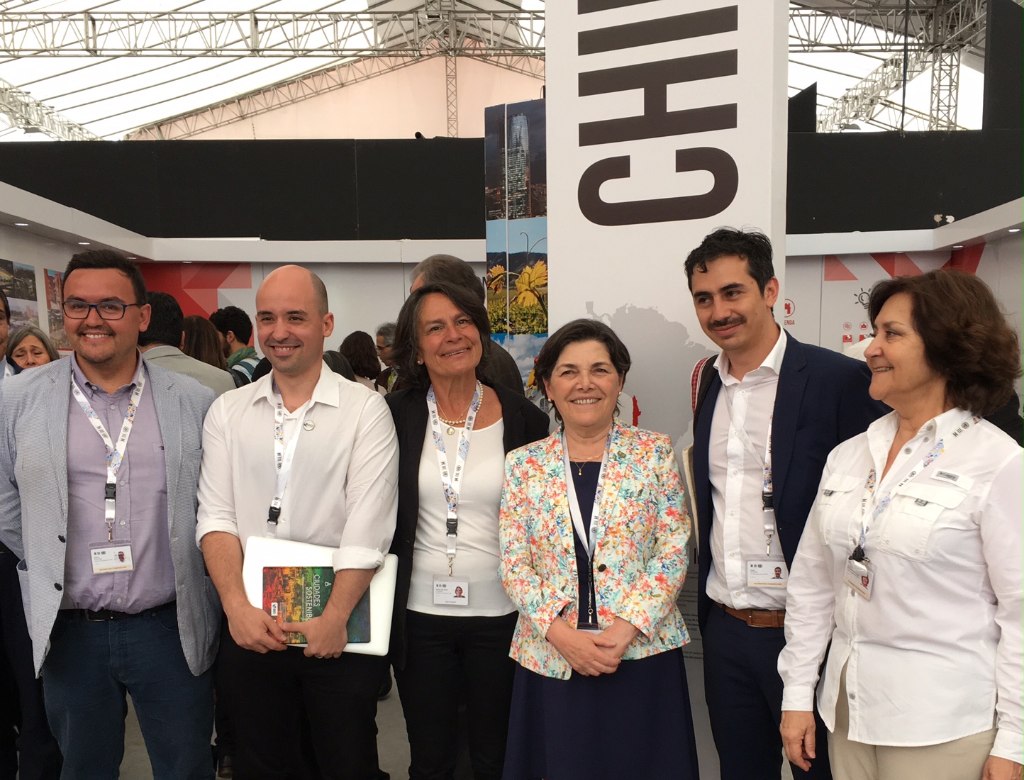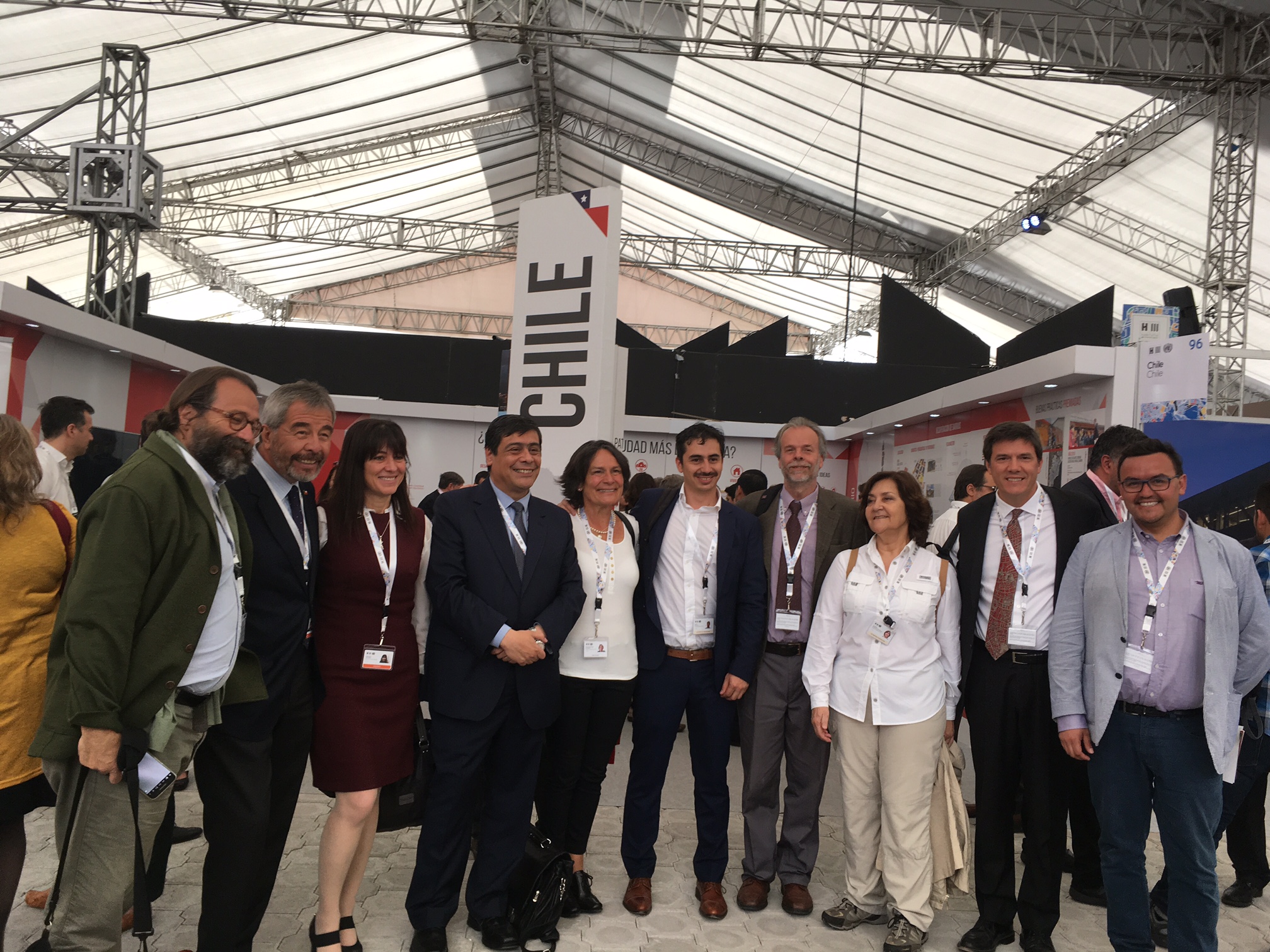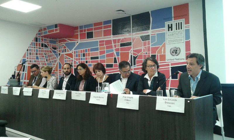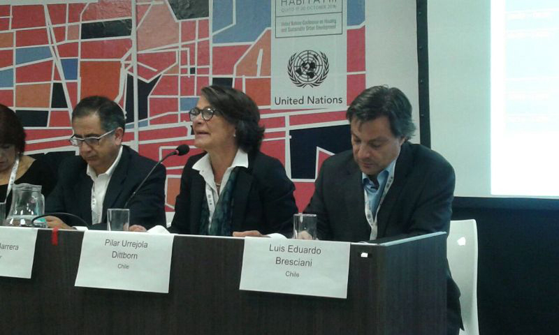 Los arquitectos representantes de Chile compartieron con la Ministra de Vivienda y Urbanismo en el Pabellón Chile. En el panel internacional de Hábitat III la titular abordó los principales avances de la política habitacional chilena en las últimas décadas, ante más de unas 600 personas y representantes de diversos estados miembros de la ONU.
