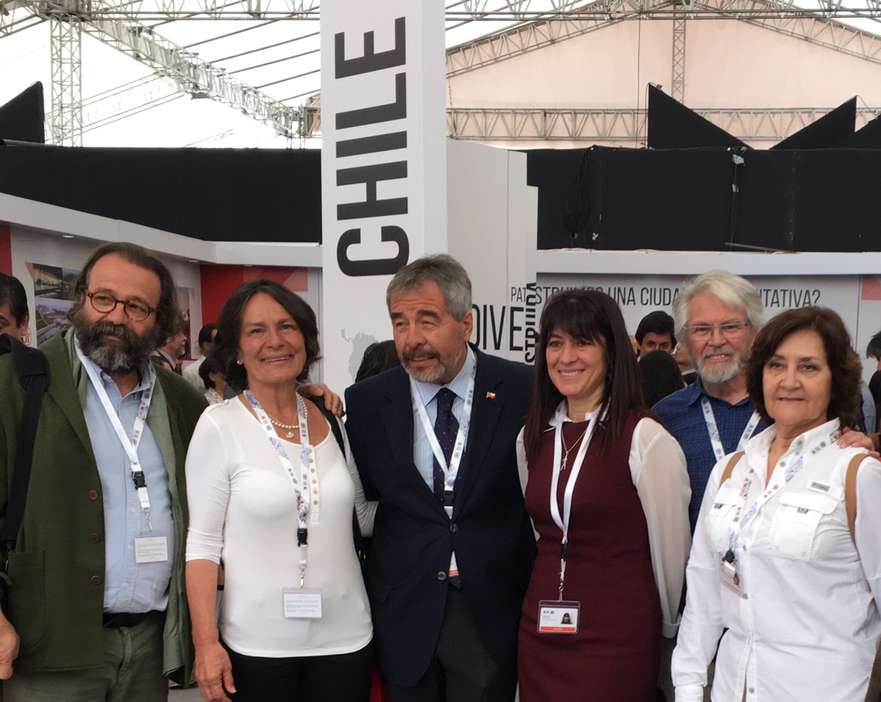 Para participar de las actividades de Hábitat, llegó hasta Ecuador la Presidenta del Colegio de Arquitectos de Chile, Pilar Urrejola, junto a otros Directores Nacionales del CA: Ximena Bórquez (Vicepresidenta de Asuntos Internos), Juan Pablo Urrutia (Secretario General), Pablo Fuentes y miembros de nuestra institución, entre ellos el Curador de la XX Bienal de Arquitectura, Felipe Vera.
