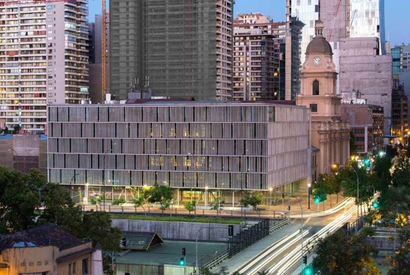 Adicionalmente, el edificio fue erigido para contrapesar un entorno complejo caracterizado por la densidad de elevados edificios habitacionales y la carretera norte sur, la cual parte en dos al centro histórico de Santiago tal como si fuera una gran zanja.