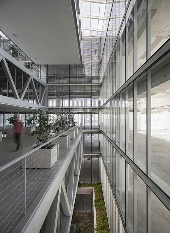 En suma, el diseño va desde los espacios abiertos de interacción ubicados en el patio y las terrazas centrales del edifico para avanzar progresivamente a espacios de trabajo cada vez más privados en dirección hacia las fachadas.