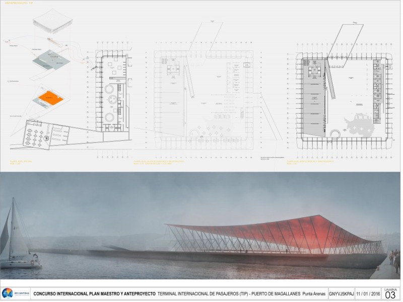 Entre 44 propuestas recibidas, el equipo liderado por los arquitectos Cecilia Puga, Paula Velasco, Patricio Mardones, Susana López y Francisca Astaburuaga se ha adjudicado el primer lugar del Concurso Internacional de Diseño del Plan Maestro y Anteproyecto del Terminal Internacional de Pasajeros (TIP) en Punta Arenas, en el extremo sur de Chile. Asimismo, el Jurado otorgó el segundo lugar a Beals + Lyon Arquitectos y el tercer lugar a Murtinho+Raby Arquitectos. Mientras que las tres menciones fueron adjudicadas a los equipos liderados por Verónica Arcos; Josep Mias Gifre; y Lyon, Bosch y Martic, respectivamente.
