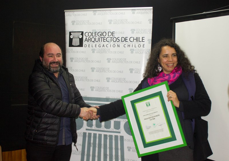 Este recayó en la arquitecta Paula Bastías Panzer, directora para Ancud de la Delegación. Se le reconoce “por su trabajo y compromiso en la puesta en valor del territorio, participando en organizaciones sociales de la provincia y liderando campañas ciudadanas, como la que evitó la demolición del edificio de la Comisaría de Ancud”, explicó Jorge Espinosa, Presidente del Colegio de Arquitectos de Chiloé.