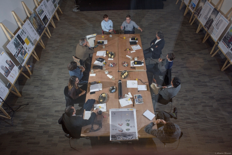 Los arquitectos Yves Besançon, Enrique Browne (Premio Nacional de Arquitectura 2010), Gonzalo Mardones, Pilar Urrejola (ex Presidenta del Colegio de Arquitectos), Pablo Larraín (Presidente de la Asociación de Oficinas de Arquitectos), Emilio de la Cerda (Director Escuela de Arquitectura Pontificia Universidad Católica), Alberto Fernández (Director Escuela de Arquitectura Universidad de Chile), Marcelo Huenchuñir (Consultor energético Pasive Haus), Pola Mora (Directora de Contenidos ArchDaily en Español) e Ivan Hildebrandt, se reunieron como jurado de la primera versión del concurso «Proyectar a conciencia» a evaluar las propuestas recibidas y elegir los proyectos ganadores.