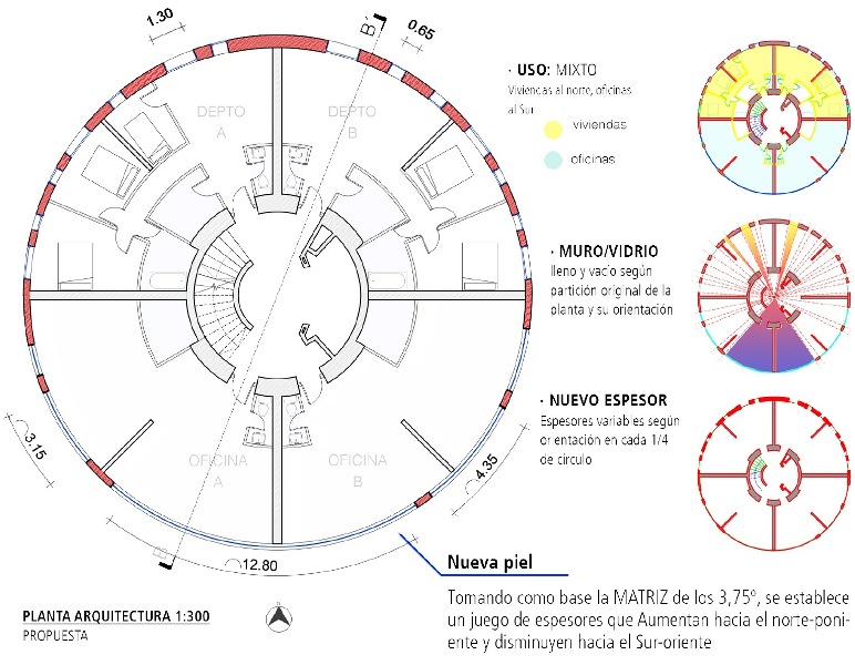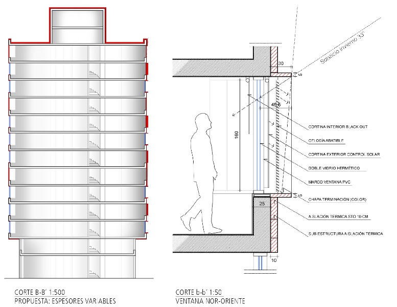 Se valora la fundamentación en plata y un análisis solar sólida que justifican las operaciones de intervención en fachada. El jurado estimó que la propuesta era clara y rotunda, centrándose en la dotación de distintos espesores y composición de vanos para dar una respuesta de mayor eficiencia energética que la condición actual del edifico. Se consideró además que la intervención es audaz y logra responder a los tiempos actuales, proponiendo además una mixtura de uso habitacional y de oficinas.