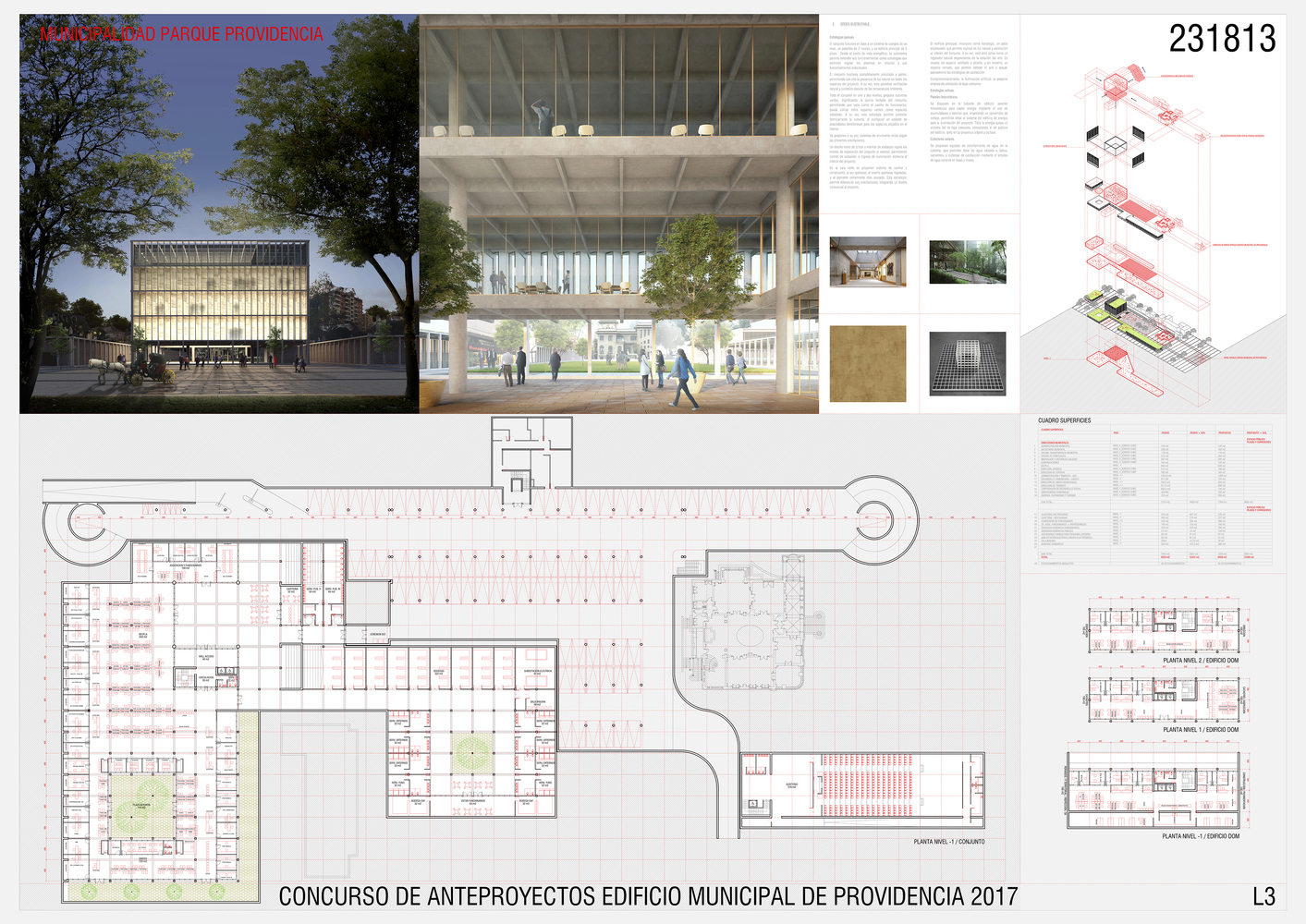 Tomás Villalón, Nicolás Norero y Leonardo Quinteros obtuvieron el primer lugar en el concurso de anteproyecto del nuevo plan maestro de la municipalidad de Providencia. El proyecto incluirá un edificio consistorial de 12.500 metros cuadrados donde se concentrarán 26 dependencias actualmente repartidas en la comuna.
