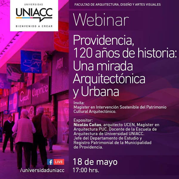“Providencia 120 años; una mirada arquitectónica y urbana” con el Arqto magister, Nicolas Cañas el día viernes 18 de mayo a las 17.00hrs:
