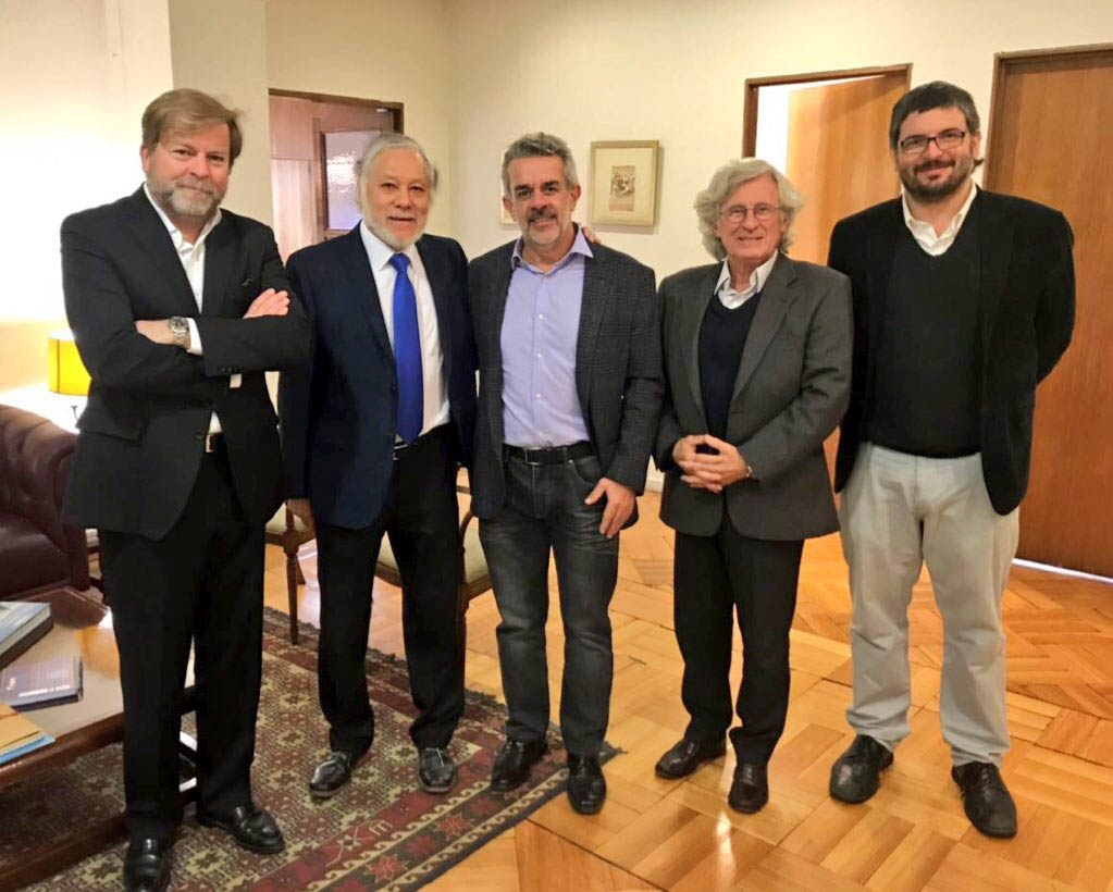 Una importante reunión tuvo lugar el miércoles 9 de mayo en el Ministerio de Obras Públicas (MOP). Los arquitectos y dirigentes gremiales Humberto Eliash, presidente del Colegio de Arquitectos e Ignacio Hernandez, presidente de la Asociación de Oficinas de Arquitectos –AOA, y otros representantes, llegaron a reunirse por primera vez con el ministro Juan Andrés Fontaine.