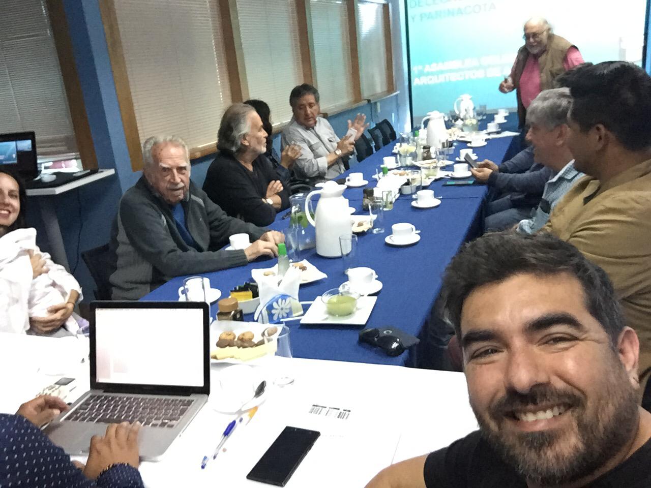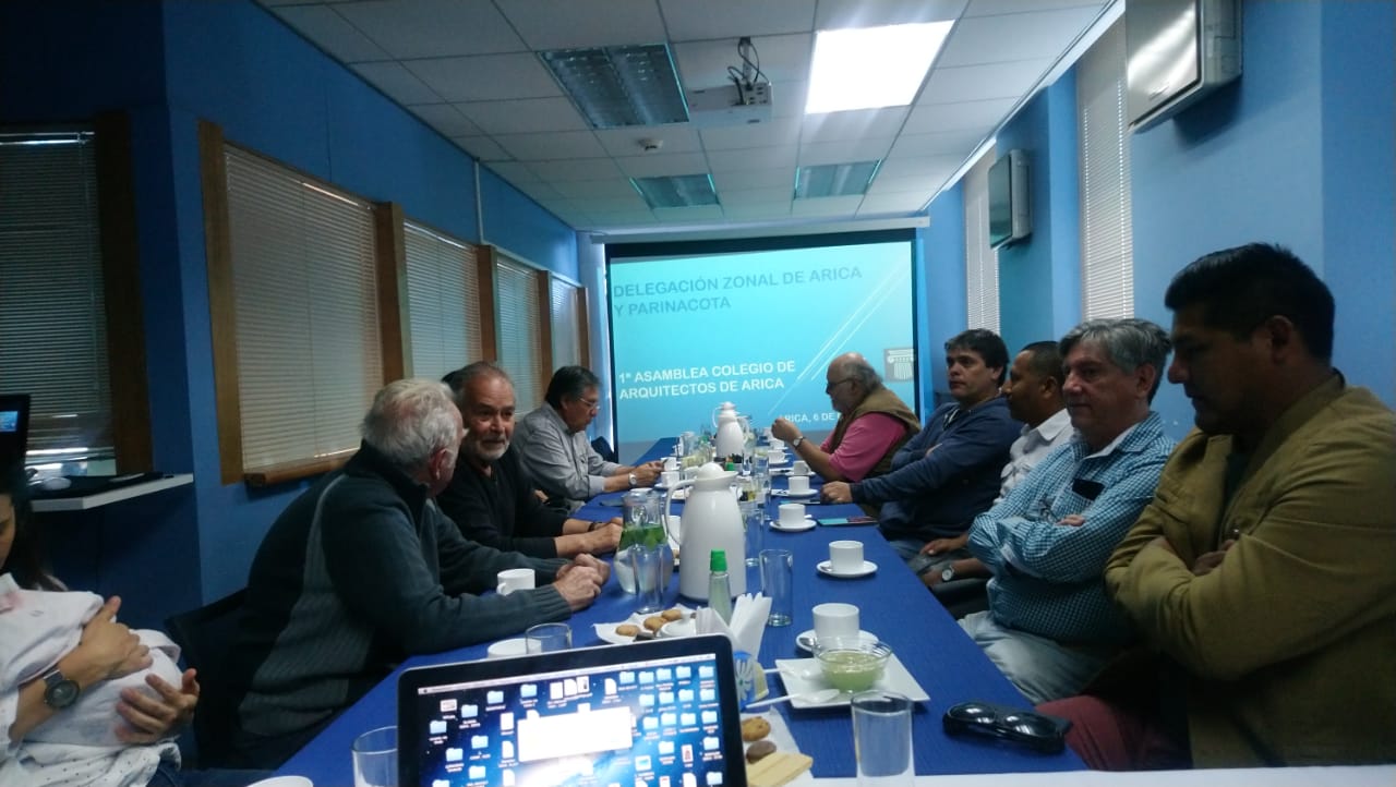 El pasado sábado 6 de octubre se realizó la asamblea general de la Delegación Zonal de Arica y Parinacota, que contó con la presencia del Director nacional del Colegio de Arquitectos, Diego Rebolledo; y a la que asistieron 12 arquitectos que buscan reactivar una DZ que llevaba más de 15 años inactiva.