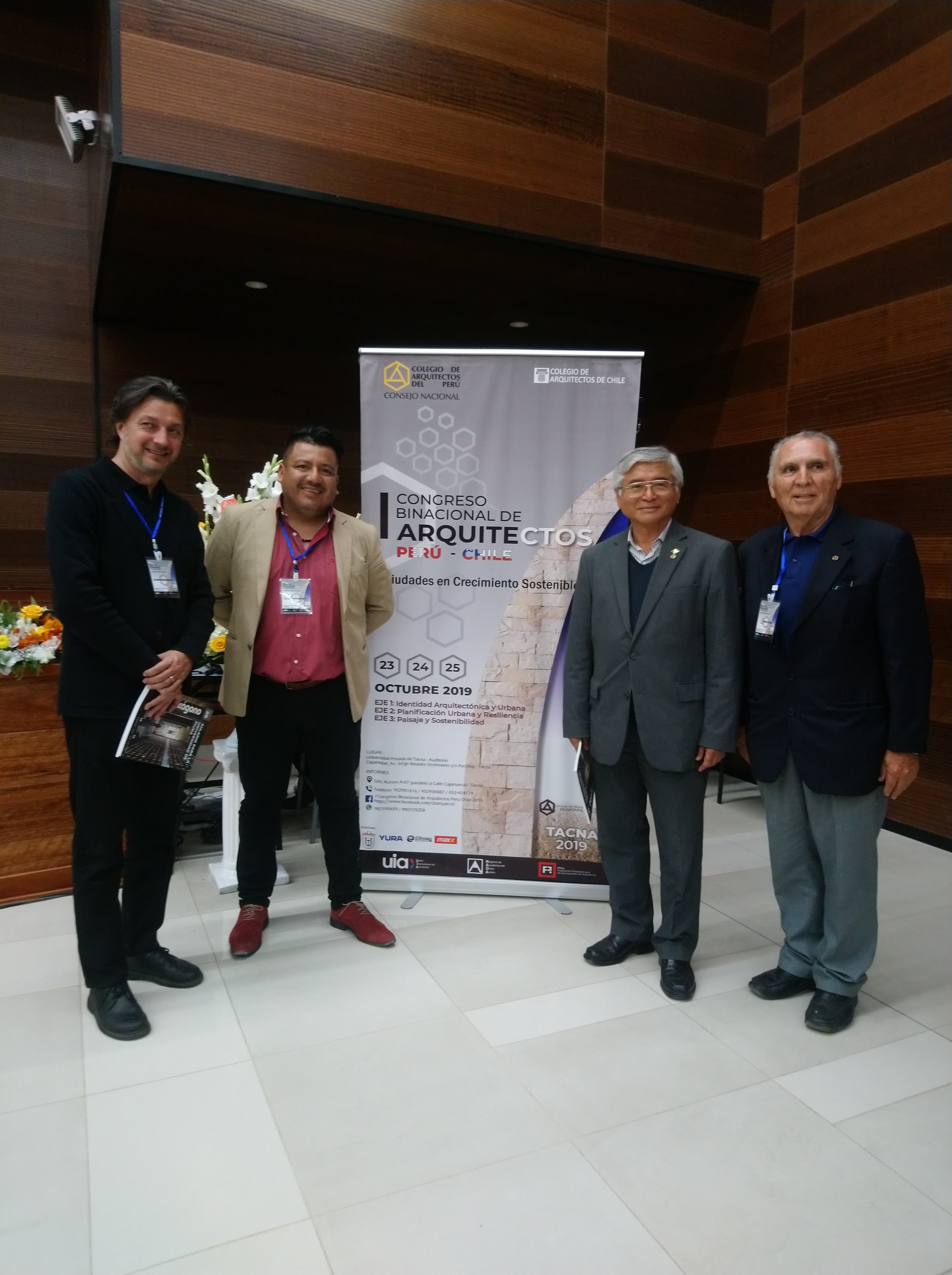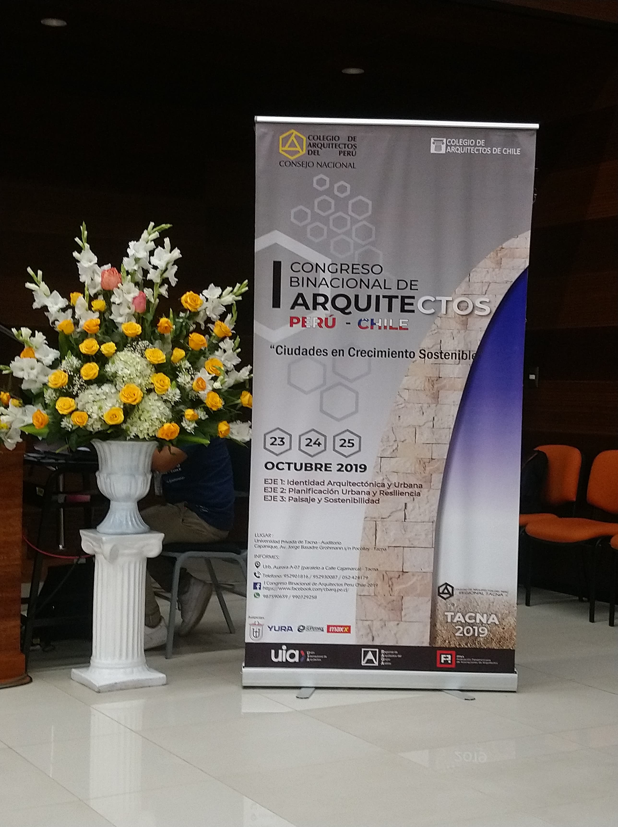 Desde el pasado 23 al 25 de octubre se realizó, en la ciudad de Tacna, el I Congreso Binacional de Arquitectos Perú – Chile, «Ciudades en crecimiento sostenible», organizado por el Colegio de Arquitectos del Perú Consejo Nacional, el Colegio de Arquitectos de Chile, el Colegio de Arquitectos del Perú – Regional Tacna y el Colegio de Arquitectos de Chile – Delegación Zonal de Arica y Parinacota.
