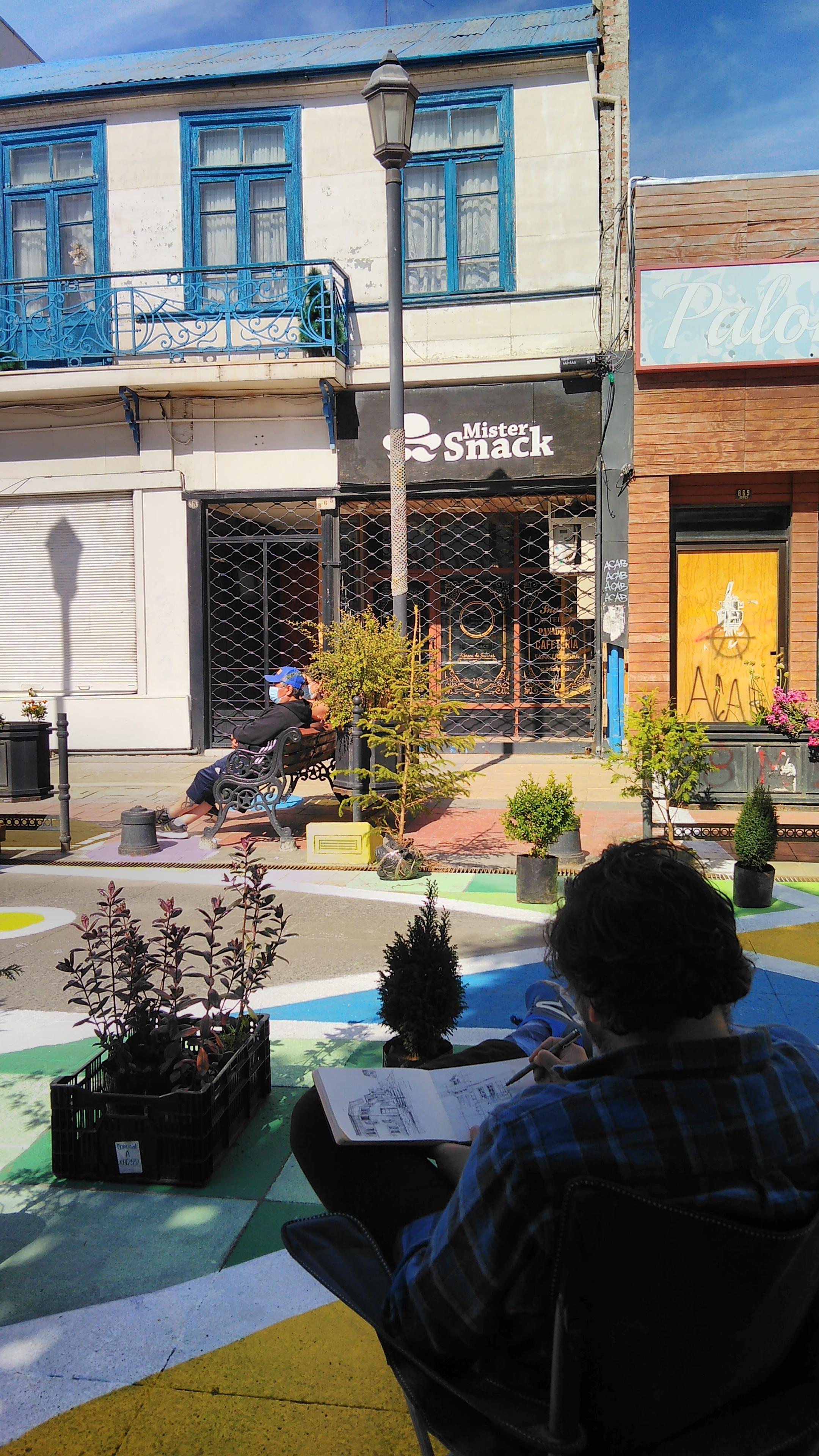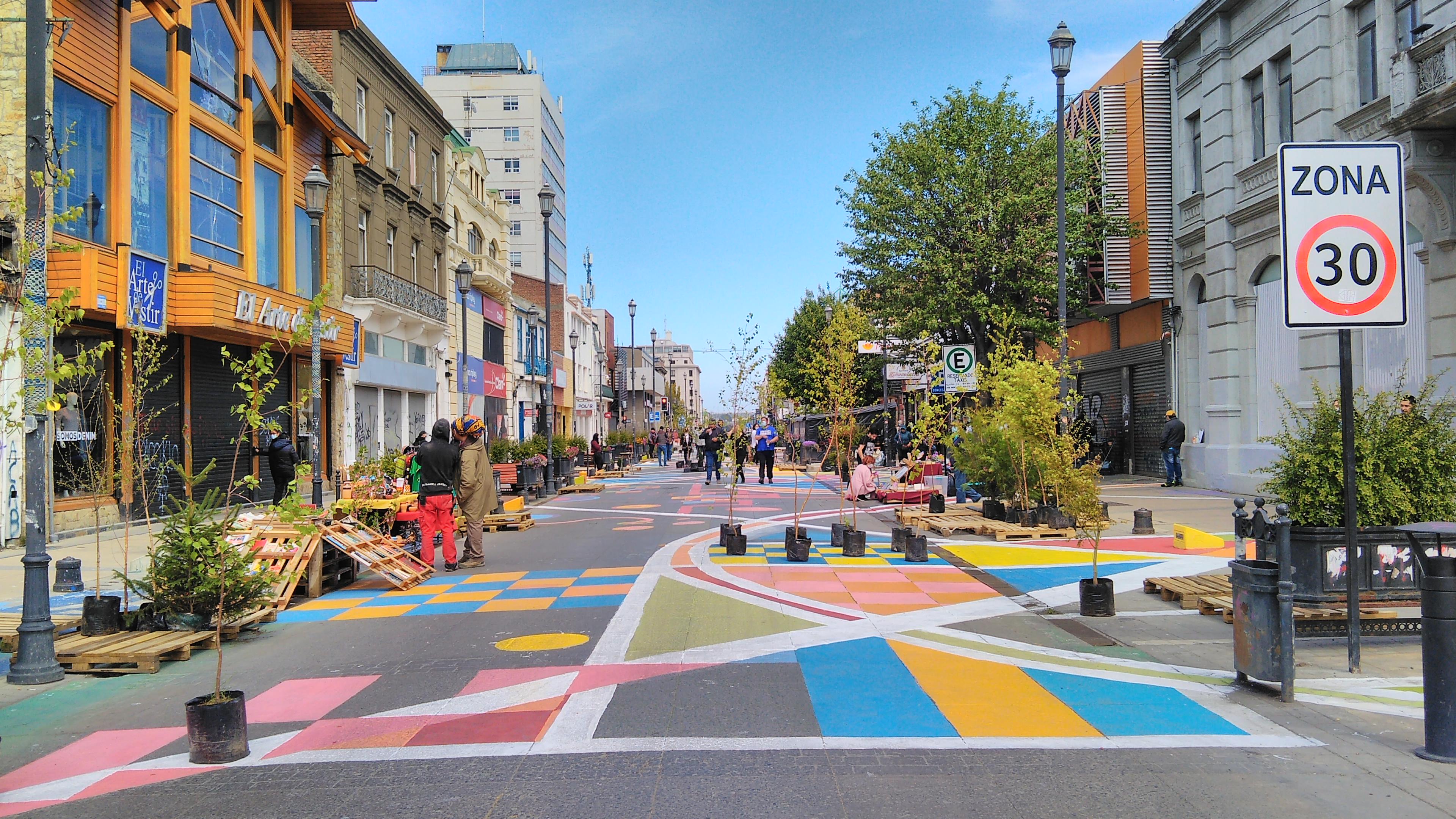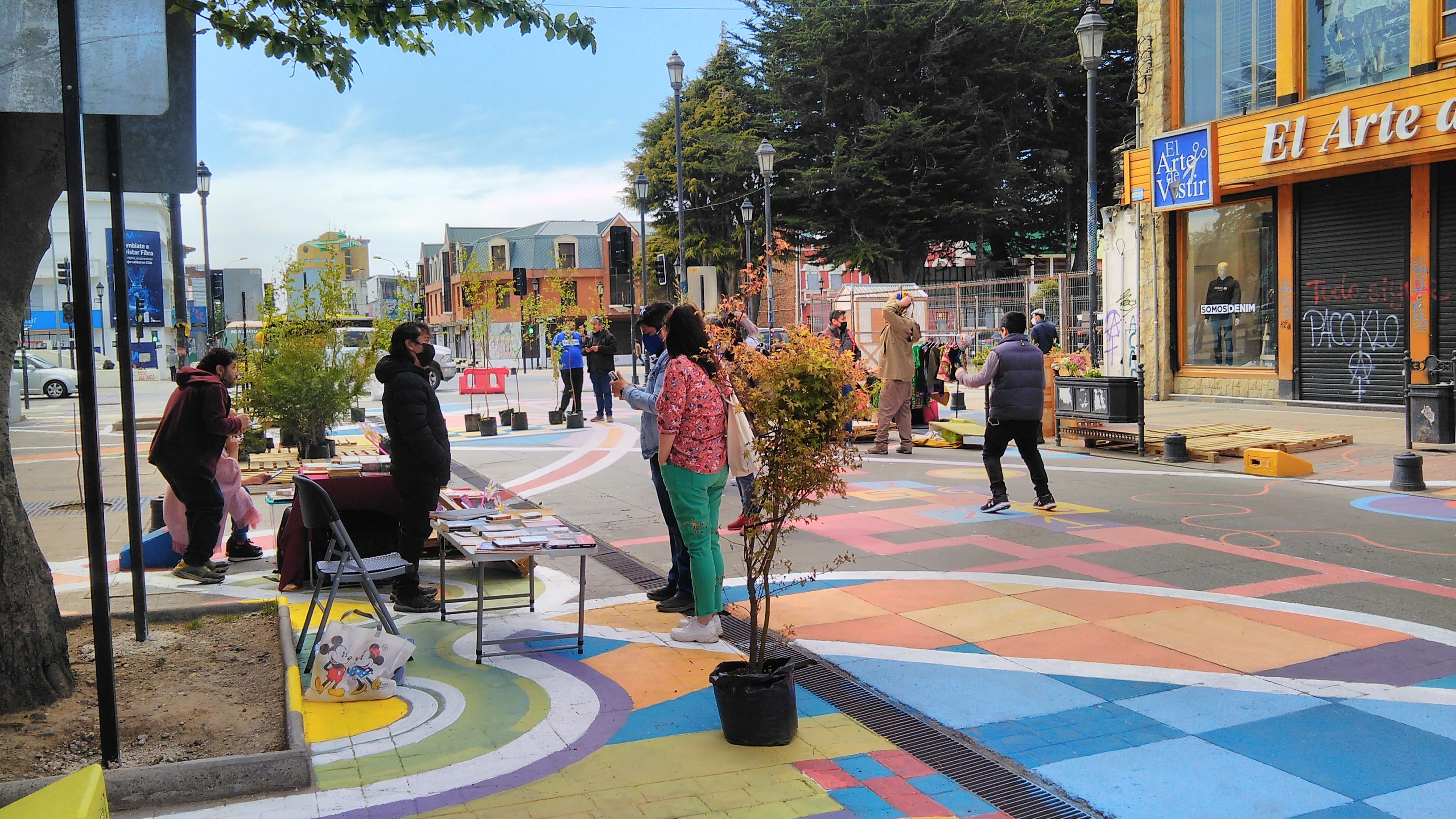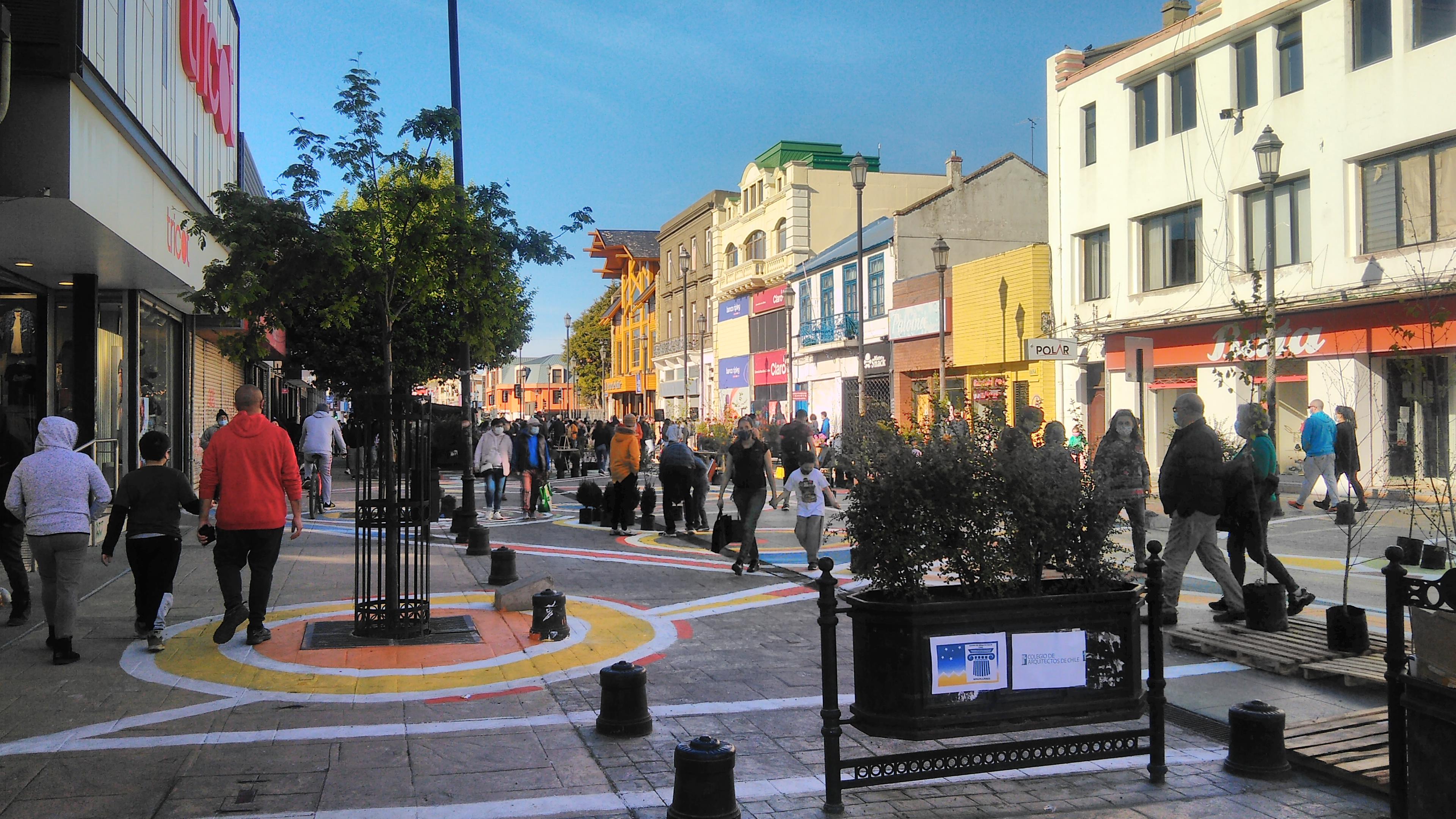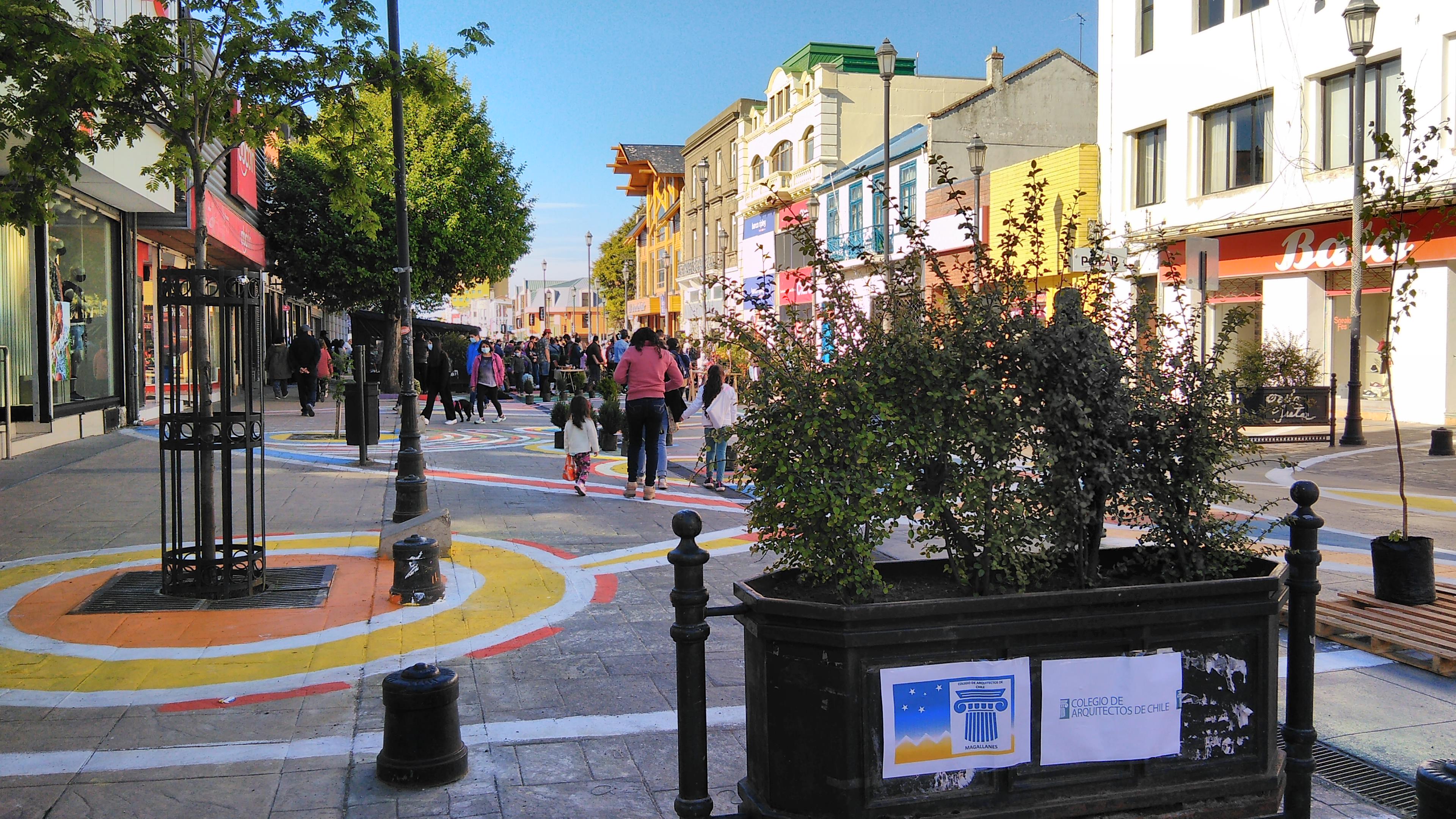 El proyecto nació al alero del comité de patrimonio local, encabezado por Humberto Salinas, y fue diseñado y aportado por los colegas Fernando Padilla y Valentina Cárdenas, mientras que los materiales fueron gestionados por socios de la delegación zonal más el aporte de pinturas, brochas y rodillos de la Cámara Chilena de la Construcción y la empresa Crosur Ltda, lo que sumado al trabajo de colegas, familiares y amigos, resultó en un trabajo participativo que les hizo evocar la época de los talleres universitarios, disponiendo las manos para intervenir la ciudad a través de un paseo peatonal de carácter temporal, exigido así por la municipalidad, el cual permitiera concentrar actividades culturales, artísticas y feriales de antigüedades, libros y artesanías en un contexto completamente nuevo para la comunidad. Cabe mencionar también la cooperación del vivero Maslov de Punta Arenas, que facilitó más de 70 especies arbóreas las cuales, junto a más de 50 pallets trasladados por el equipo de trabajo, permitieron cambiar el rostro gris de la calle en un paseo colorido y verde.