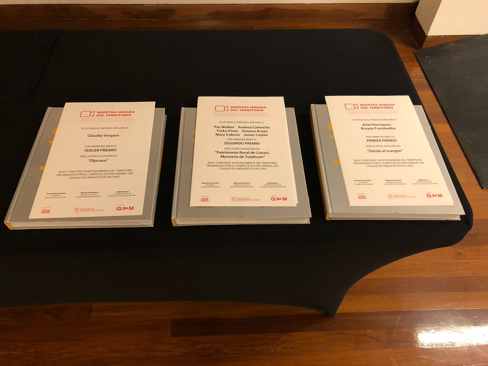 El pasado viernes 12 de noviembre en la Sala C1 del Centro Cultural Gabriela Mistral (GAM) se realizó la ceremonia de premiación del concurso audiovisual «Nuestra mirada del territorio», organizado por el Comité de Acción Gremial (CAG) del Colegio de Arquitectos de Chile (CA).