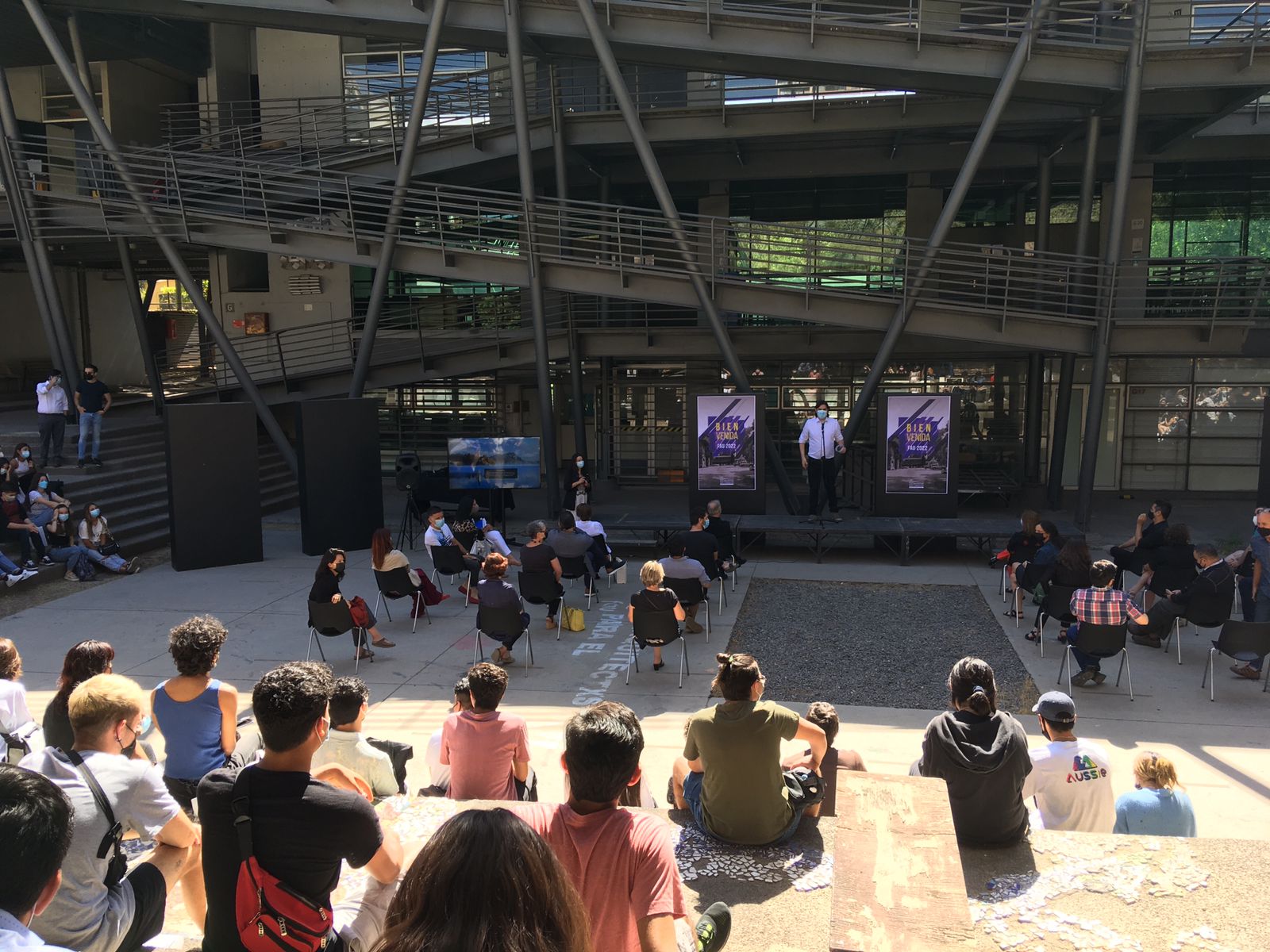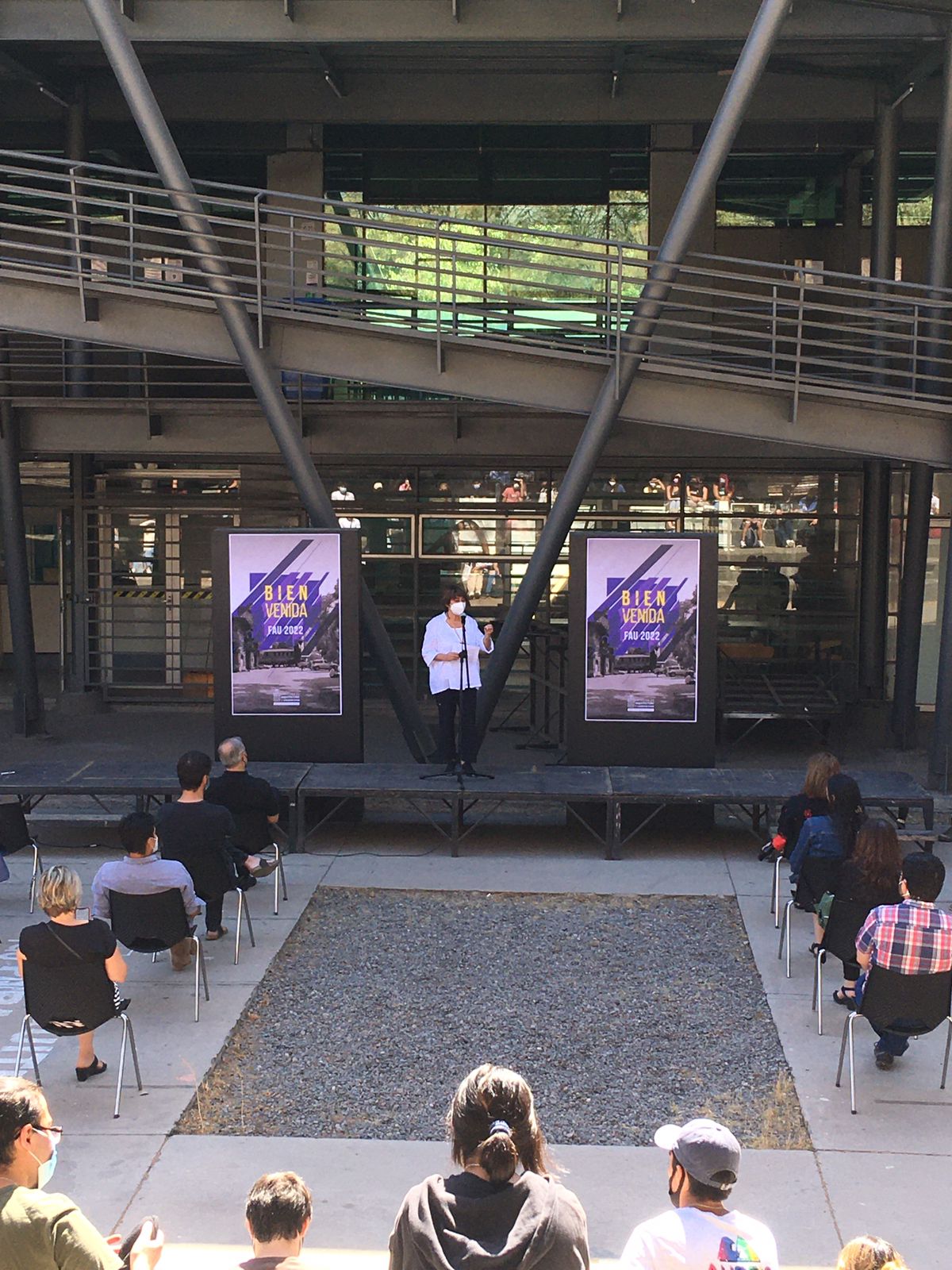 En la instancia, la Presidenta Jadille Baza pudo dirigir algunas palabras a las y los nuevos estudiantes de Arquitectura de la Facultad de Arquitectura y Urbanismo, que luego de dos años comenzarán su año académico de forma presencial: