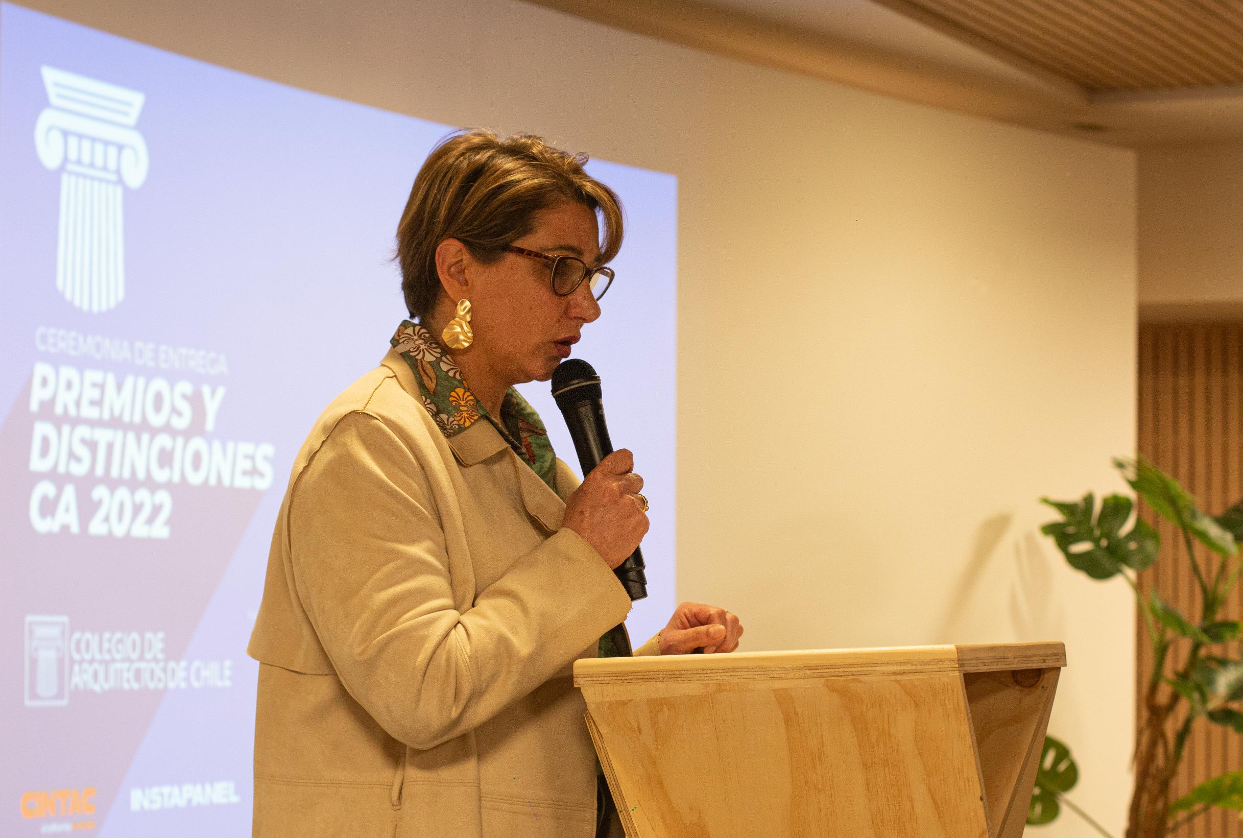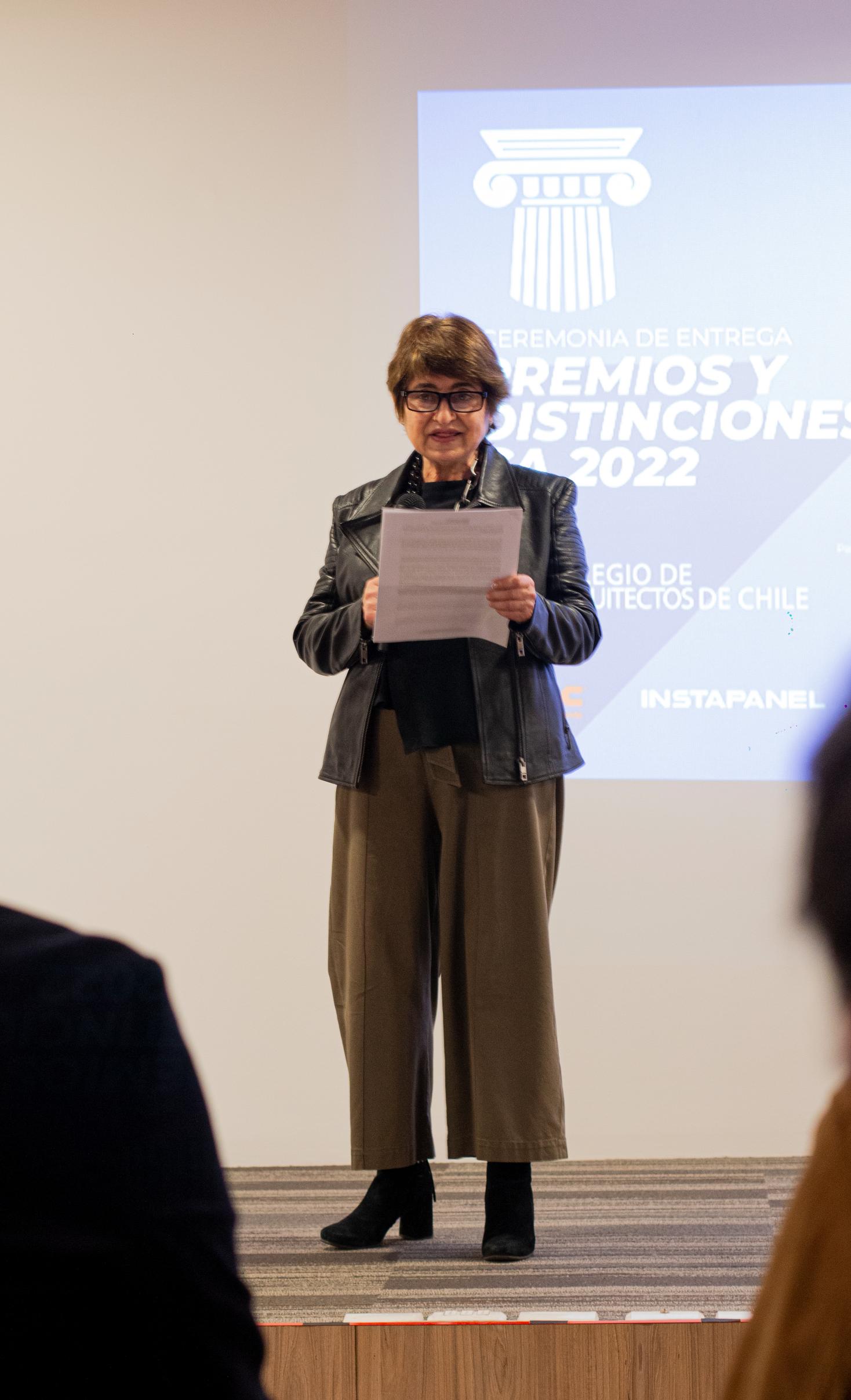 Entregado por la Secretaria General del Colegio de Arquitectos de Chile, Lorena Estai.