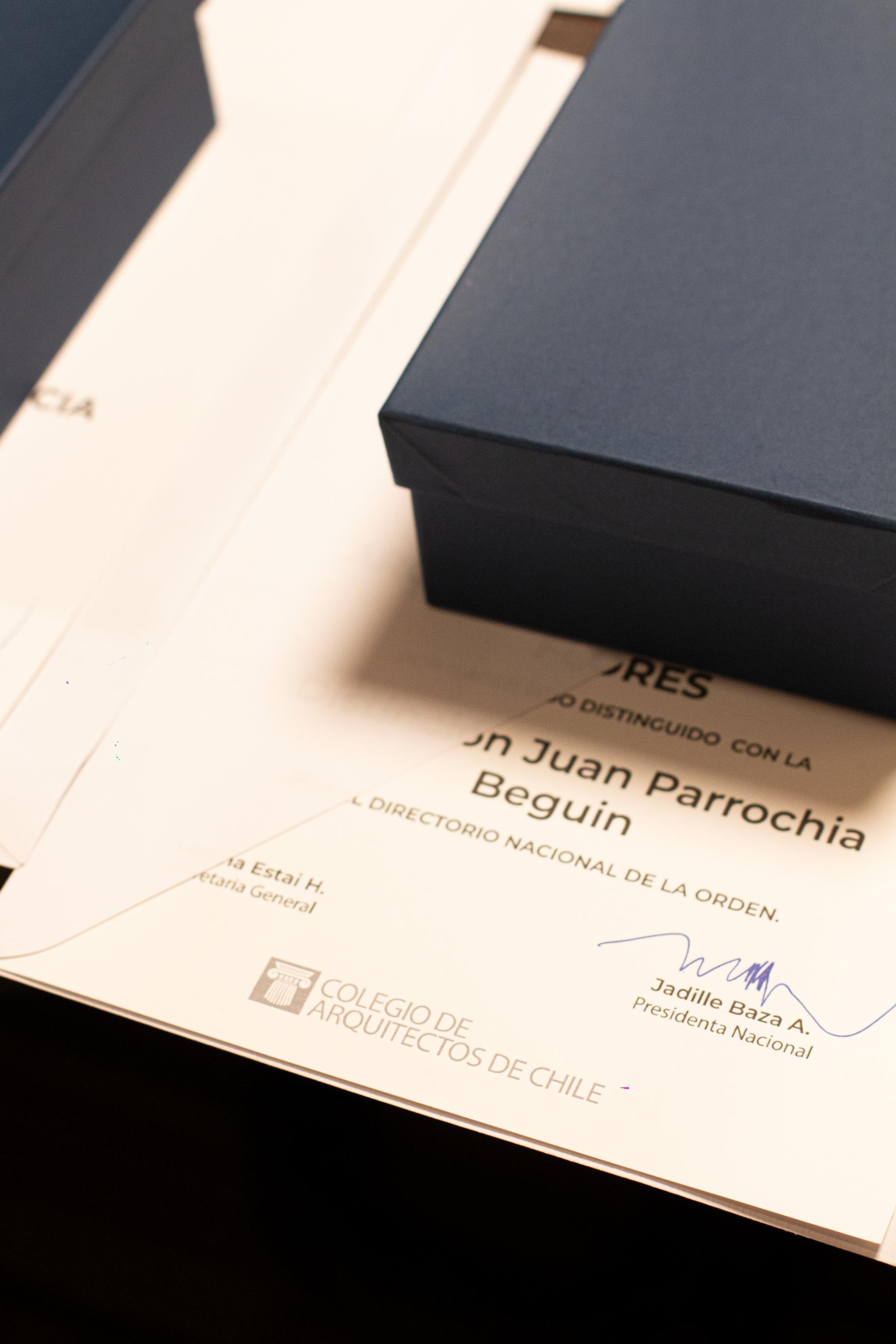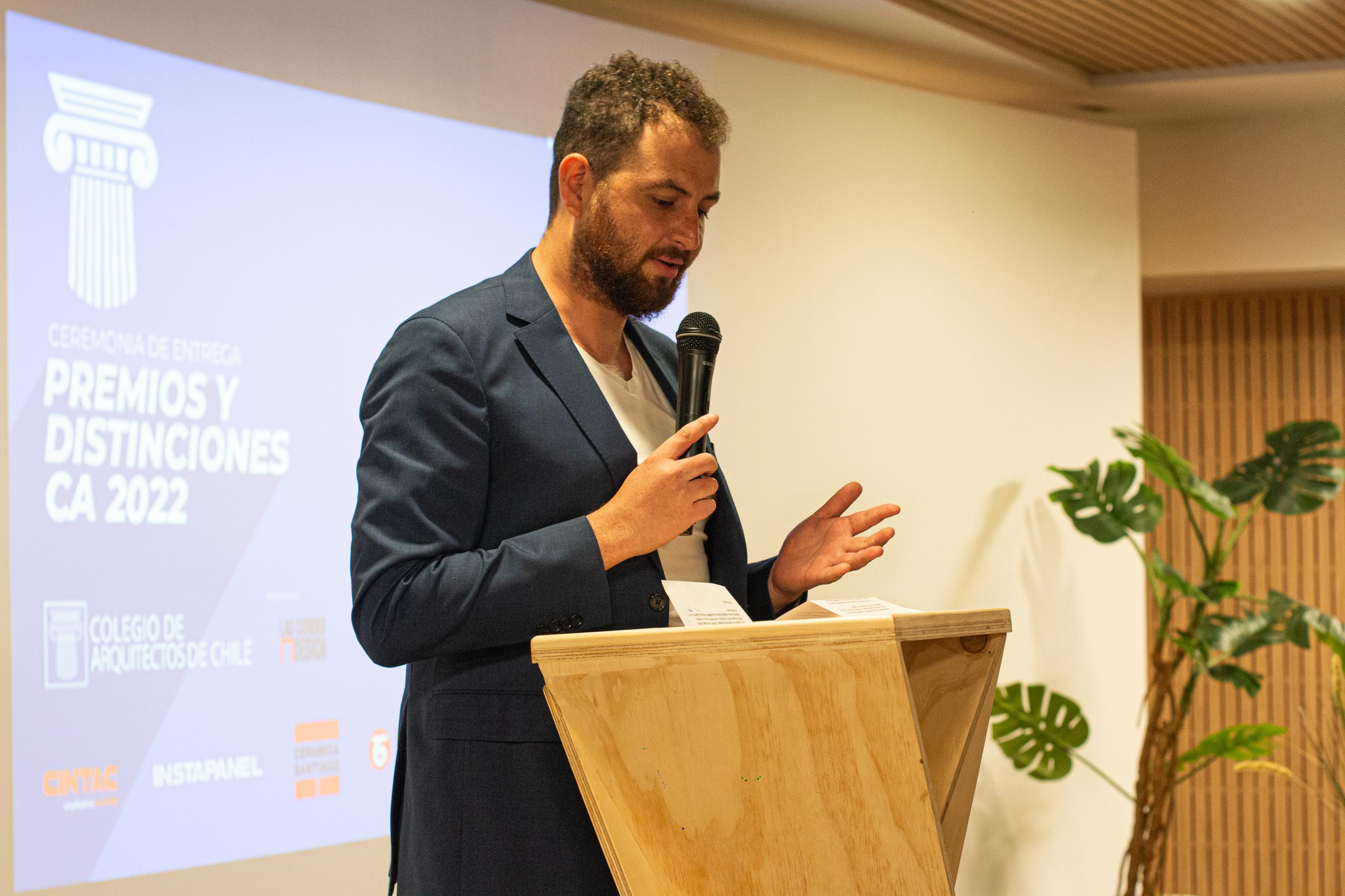 Entregado por el Vicepresidente de Asuntos Internos del Colegio de Arquitectos de Chile, Francisco Herrera.