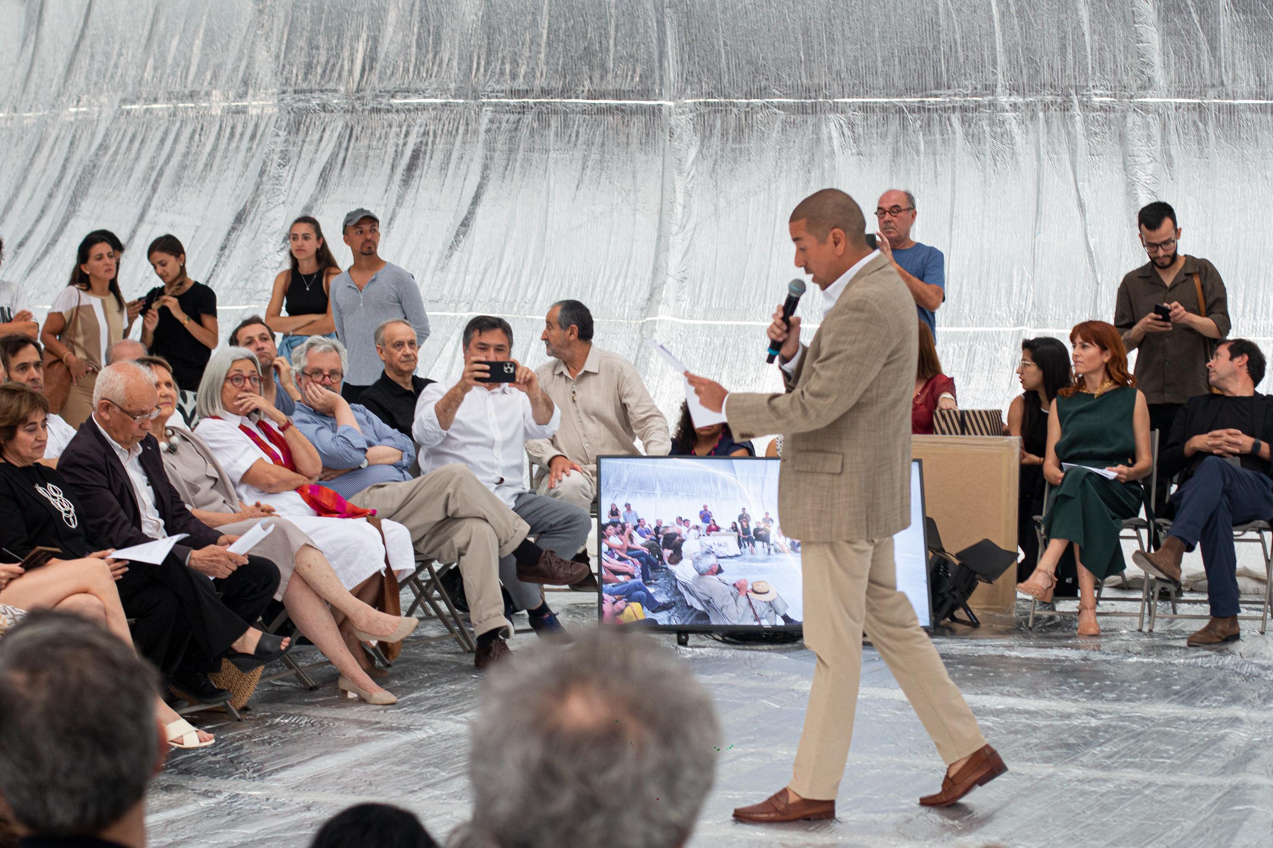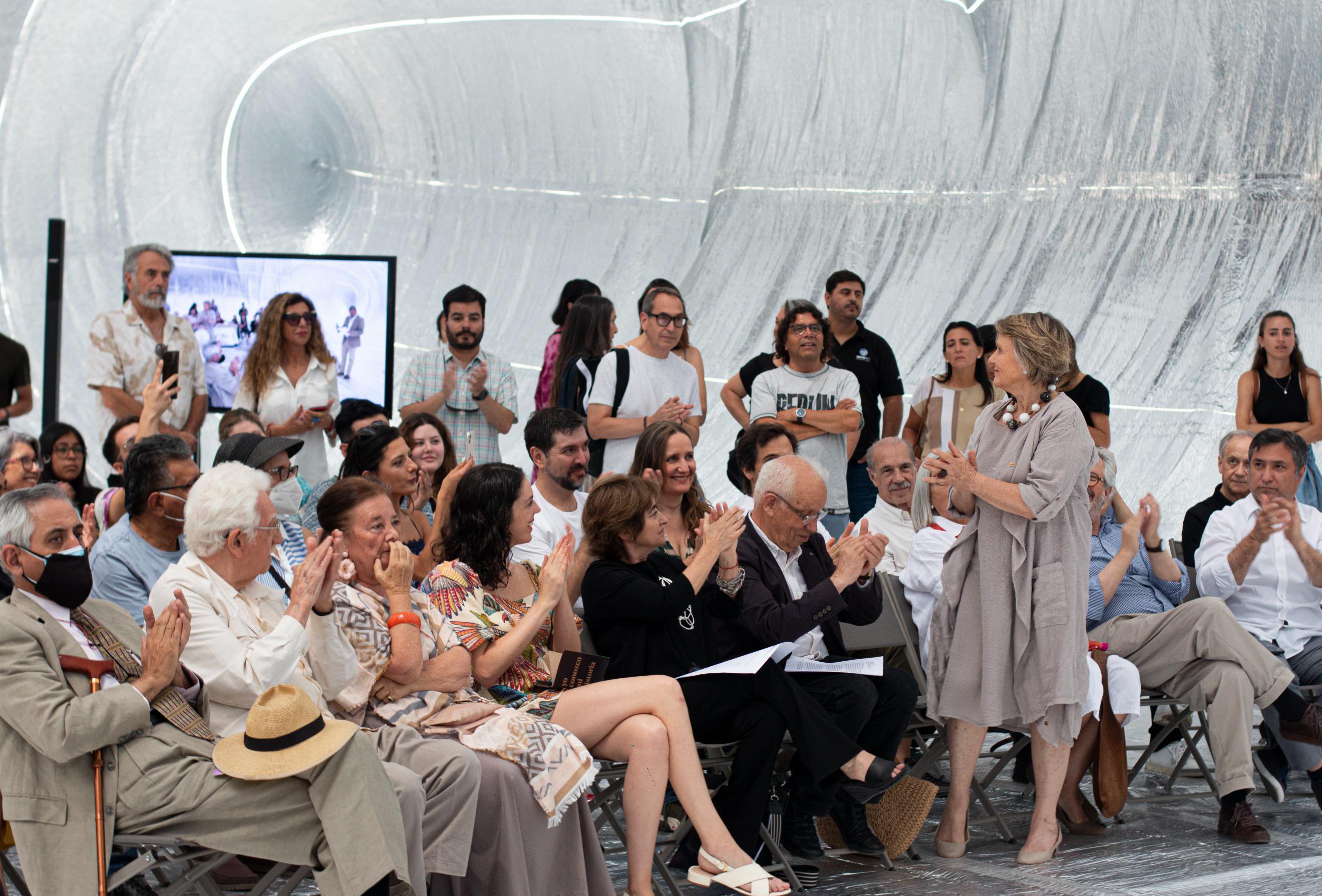 La emotiva ceremonia realizada en la Estructura Inflable – Escenario Temporal ubicada en Plaza Bulnes tuvo la presencia del Directorio Nacional liderado por la nueva Presidenta Nacional Beatriz Buccicardi, ex Presidentes y Presidentas Nacionales, ex Premios Nacionales de Arquitectura, ex Presidentes y Curadores de Bienales, autoridades de gobierno, regionales, comunales y universitarias.