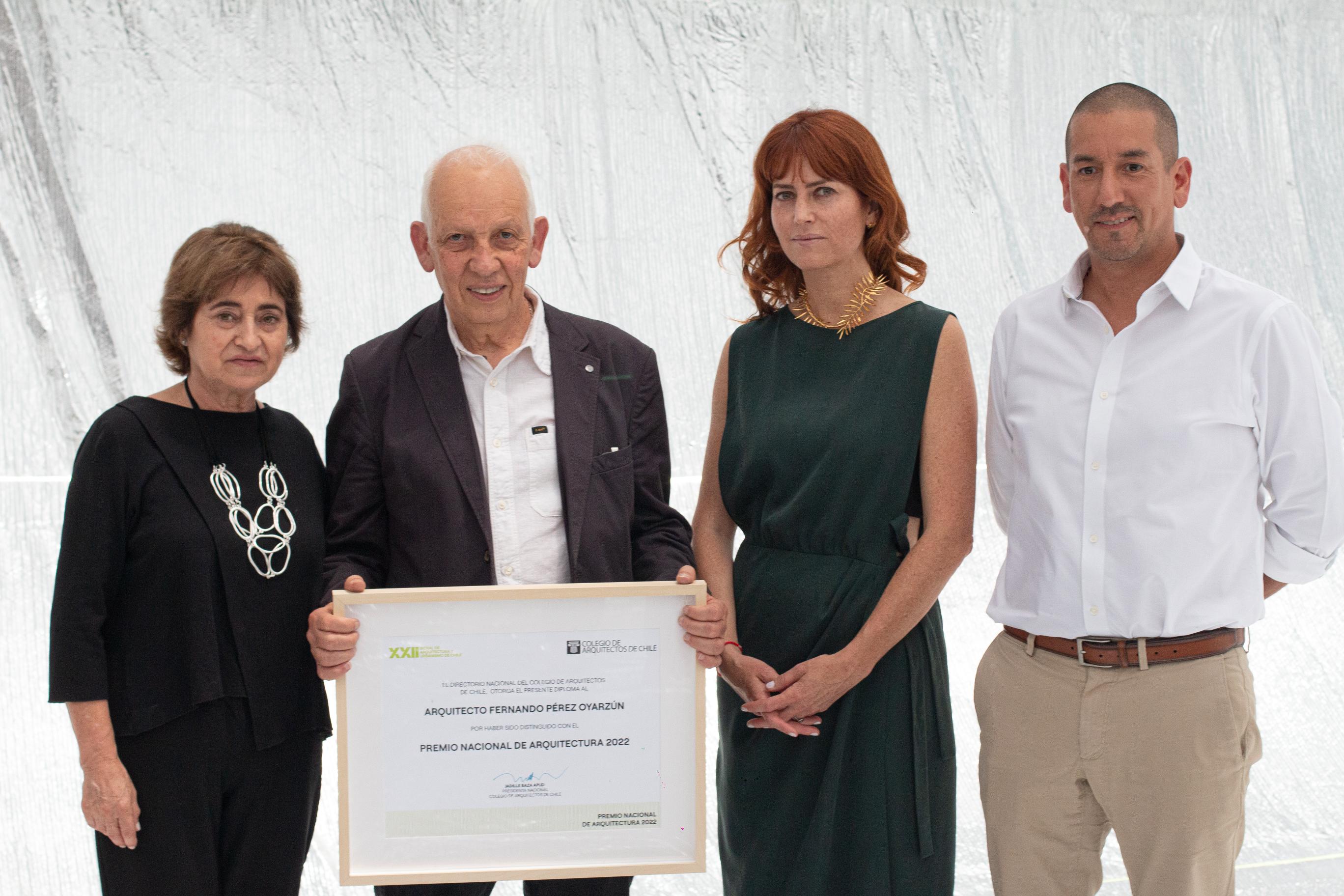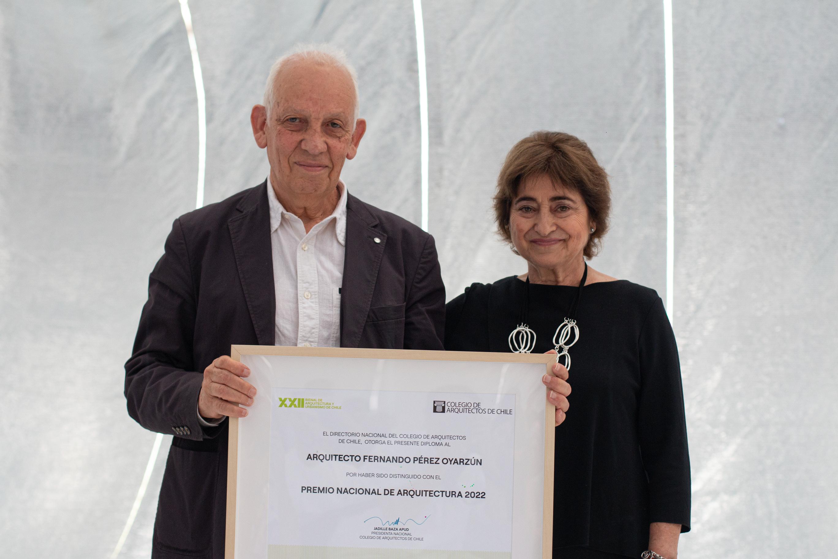 «Qué orgullo y tranquilidad nos entrega tener un Premio Nacional de Arquitectura 2022 como Fernando Pérez Oyarzún, que ha abierto diversos caminos en nuestra profesión y nos recuerda algo que muchas veces olvidamos: hay infinitas formas de hacer arquitectura», indicó la ex Presidenta Nacional del Colegio de Arquitectos de Chile, Jadille Baza, antes de la entrega del galardón.