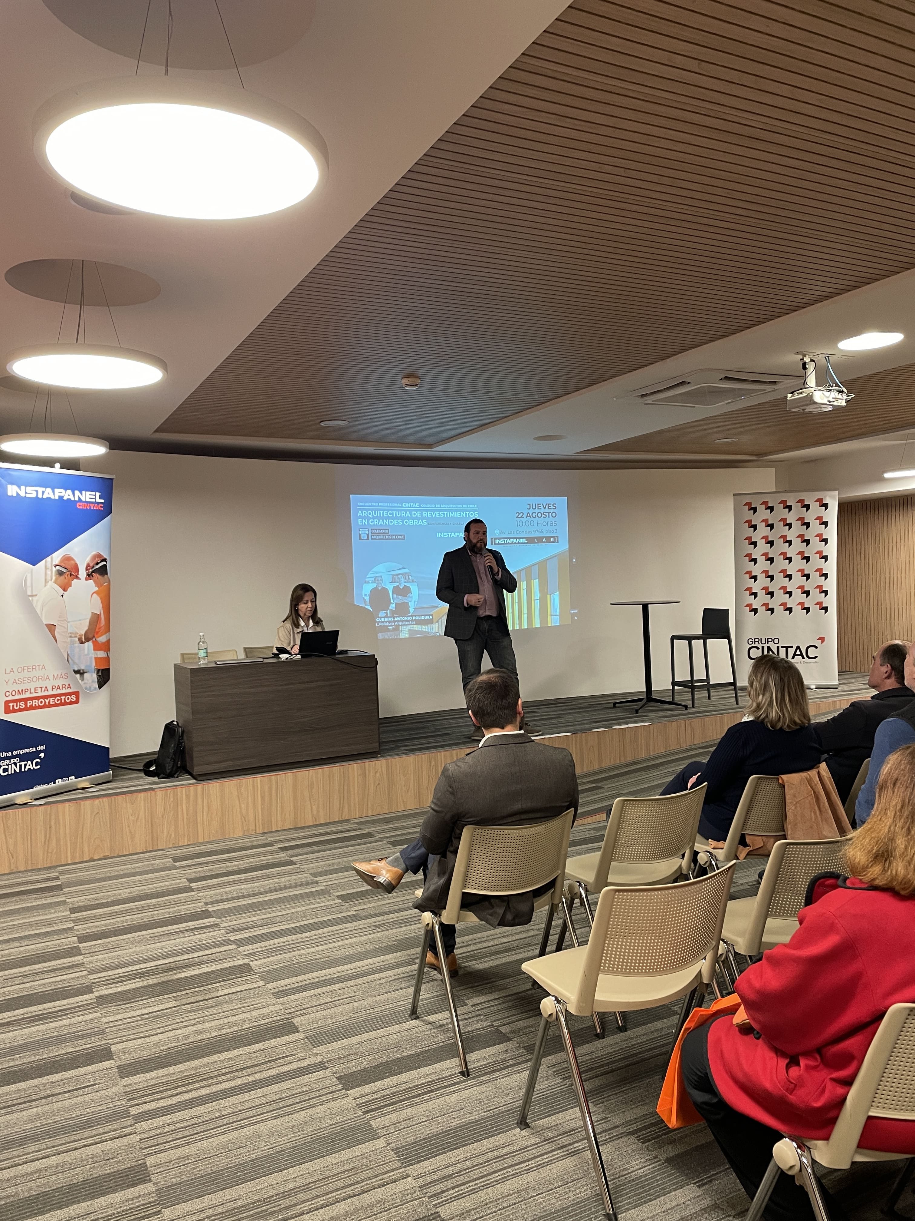 Por otra parte, el encuentro contó con una charla de Pedro Gubbins y Antonio Polidura, socios de la destacada oficina Gubbins Polidura Arquitectos, quienes mostraron parte de su proceso creativo, proyectos emblemáticos y las virtudes de integrar productos de CINTAC en sus diseños.