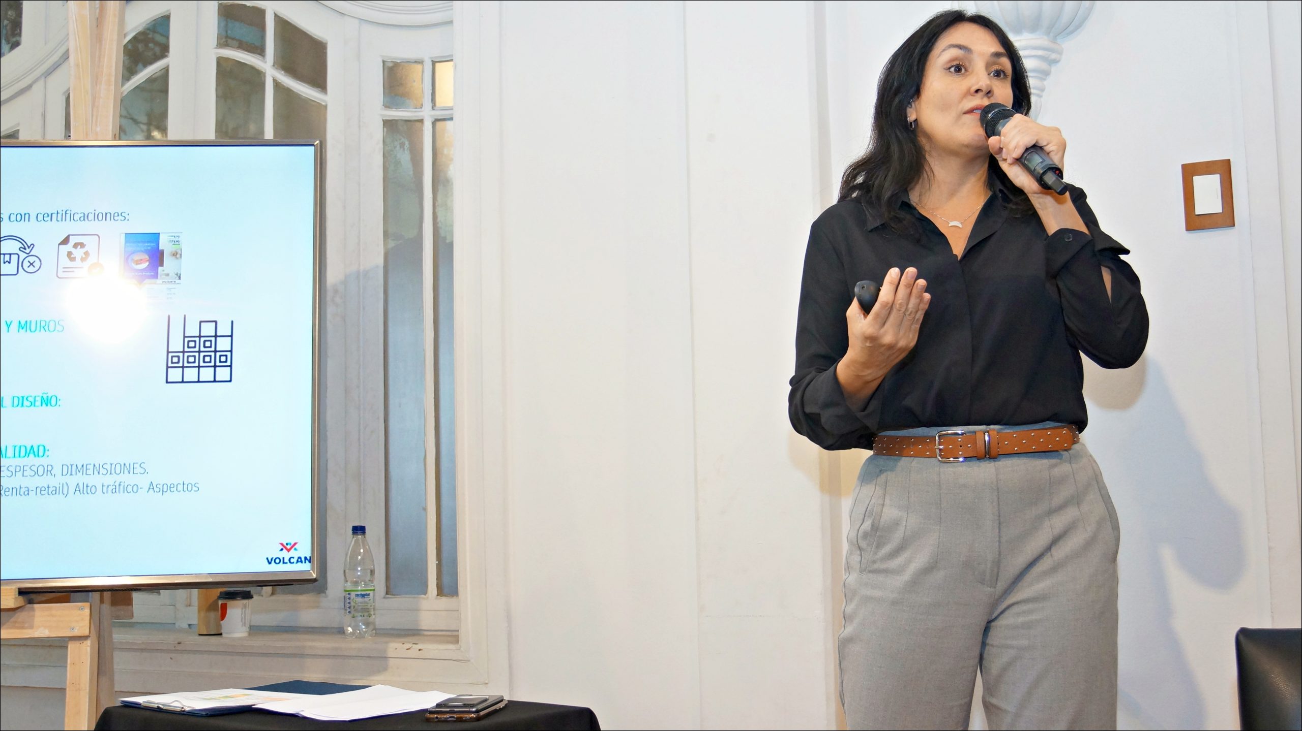 También estuvo la industria presente con la exposición de Liset Sapaj de la empresa Volcán, con la presentación de su Catálogo de Soluciones Constructivas.