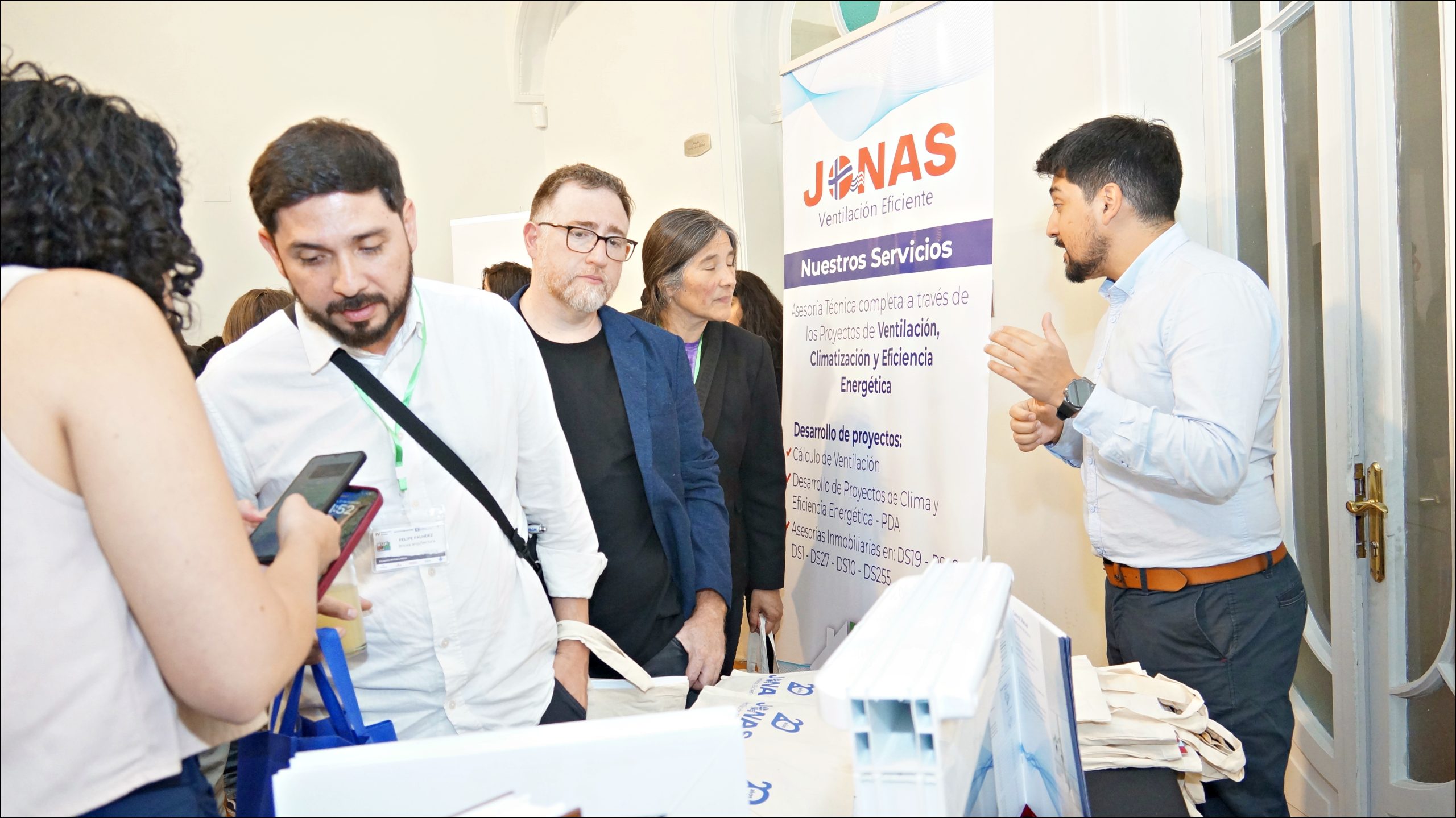 Posteriormente expuso Waldo Bustamante, director del Centro de Desarrollo Urbano Sustentable (CEDEUS), quien presentó su visión sobre los «Desafíos y oportunidades: transición energética hacia energía neta cero en edificios». En su intervención, destacó la importancia de integrar diseño pasivo, eficiencia energética y energías renovables para alcanzar las metas de neutralidad carbónica en el sector construcción.