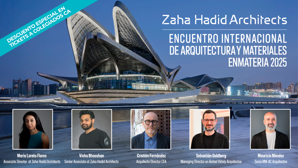Este año, ENMATERIA SPECS SpA tiene el privilegio de traer a Chile a la prestigiosa oficina Zaha Hadid Architects (Reino Unido), una de las más reconocidas e influyentes a nivel mundial, reafirmando así el carácter internacional y de excelencia de este encuentro.