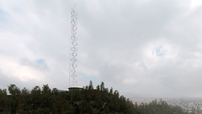 Santiago, 4 de febrero de 2014. Santiago, 4 de febrero de 2014. El ministro de Vivienda y Urbanismo, Rodrigo Pérez (@ministroperezm), anunció que el arquitecto chileno Smiljan Radic Clarke ganó el concurso internacional de la “Torre Antena Santiago”, cuyo objetivo fue elegir el diseño para dotar al cerro San Cristóbal de una torre única de telecomunicaciones y un mirador panorámico de la ciudad de Santiago.