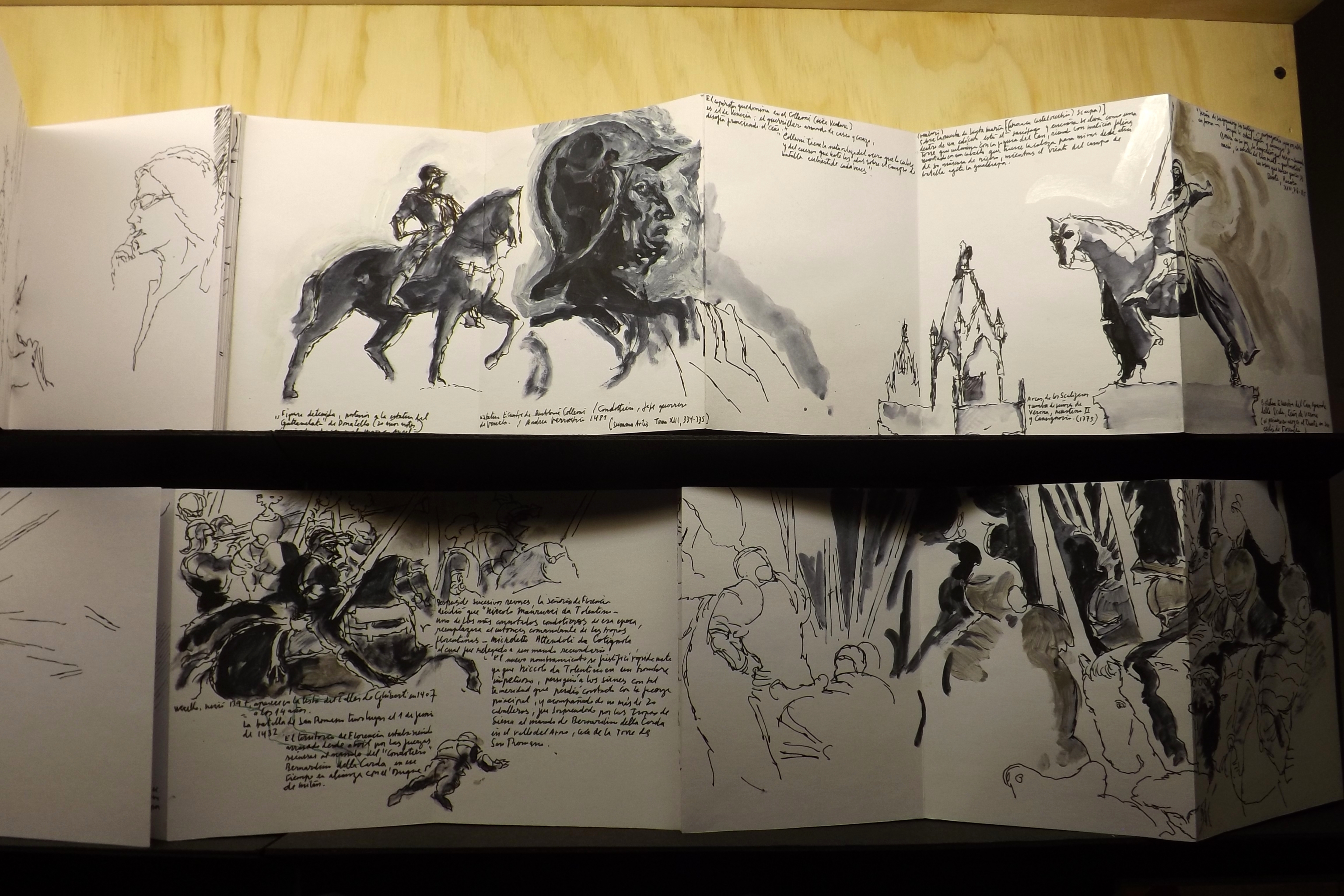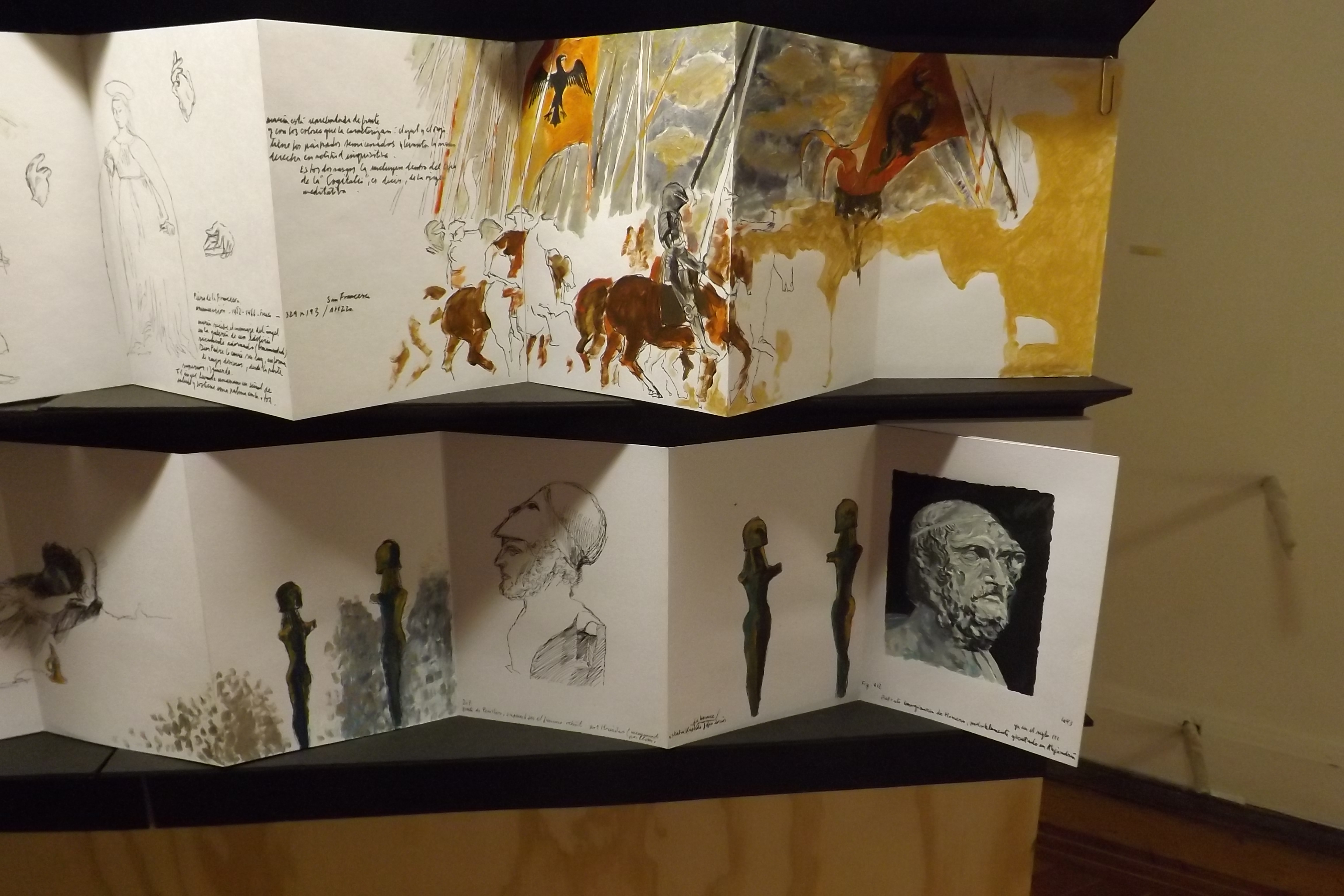 «Lo que yo expongo son fragmentos de cuadernos de viaje de los últimos doce años, especies de libros épicos, que reviven y valoran la condición humana. Antes los exhibí en Valparaíso, Antofagasta, tres veces en Argentina y una vez en Uruguay y también Venezuela», explica Moreno.