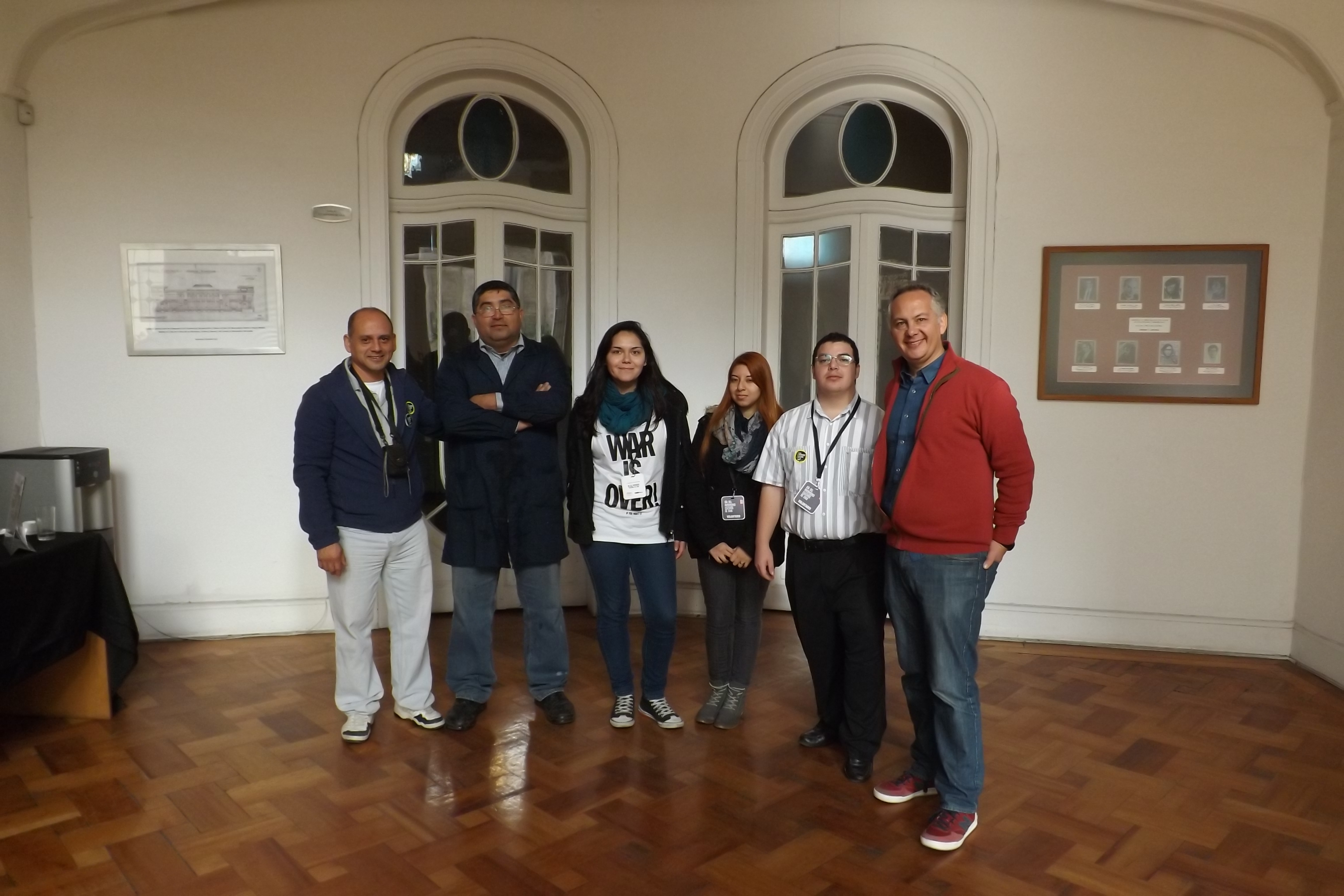 - Otárola junto a los voluntarios que trabajaron en el recorrido por el Colegio de Arquitectos
