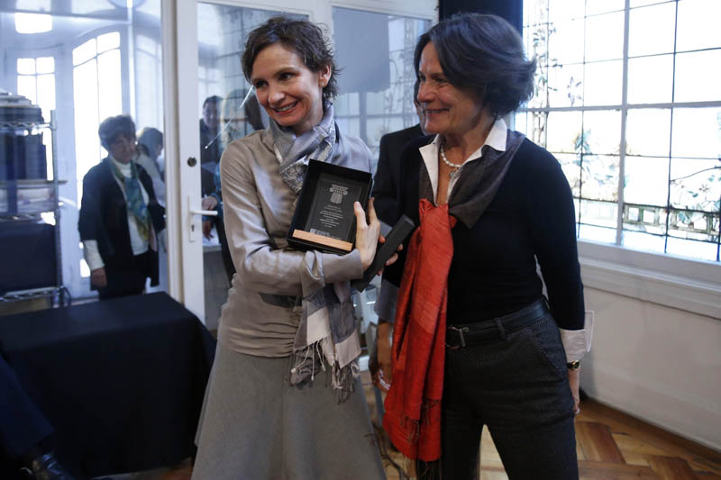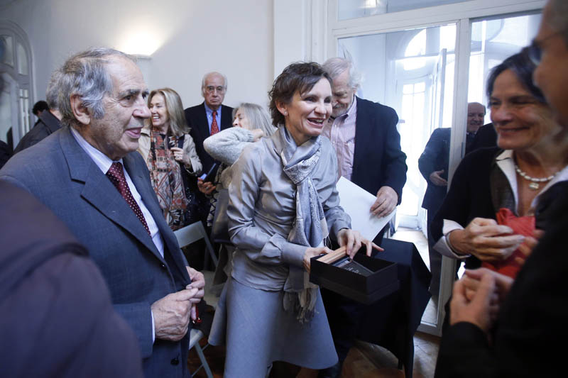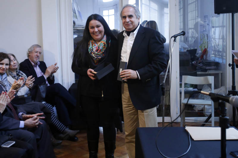 - Gunther Suhrcke, Director CA, entrega a Margarita Greene «Premio Sergio Larraín G.»