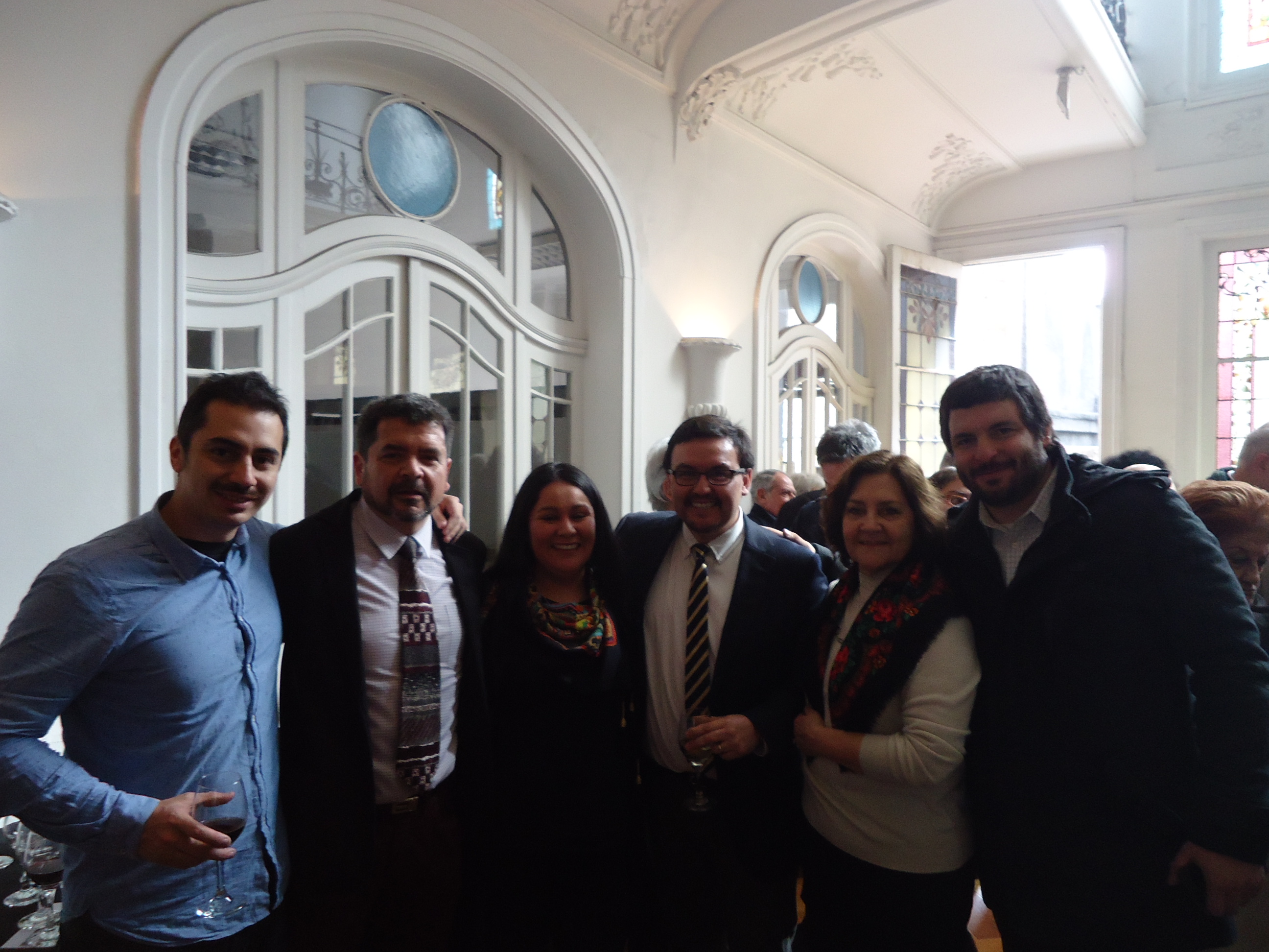 Espinosa se salió de protocolo y en nombre de la Delegación Chiloé entregó diplomas que valoran los aportes al Archipiélago de los arquitectos de Santiago, Sebastián Gray (Past President CA), Ximena Bórquez (Vicepresidenta CA) y Enrique Vial (Representante CA ante el Consejo de Monumentos Nacionales).