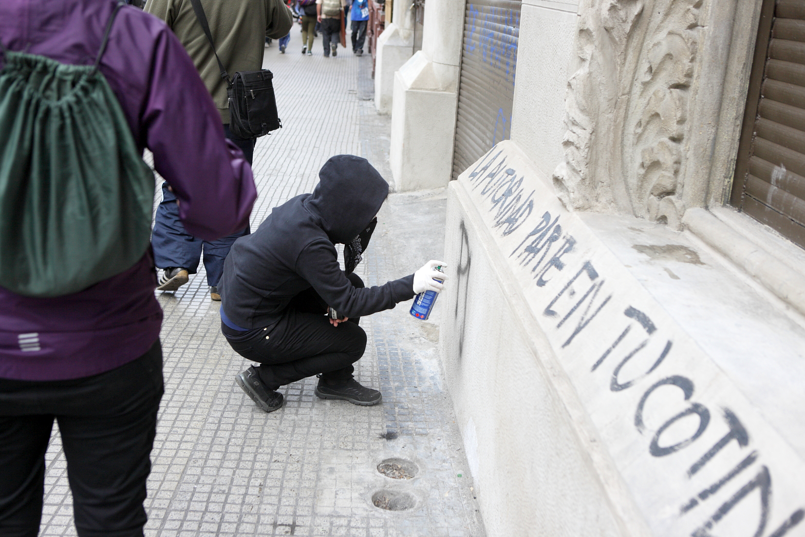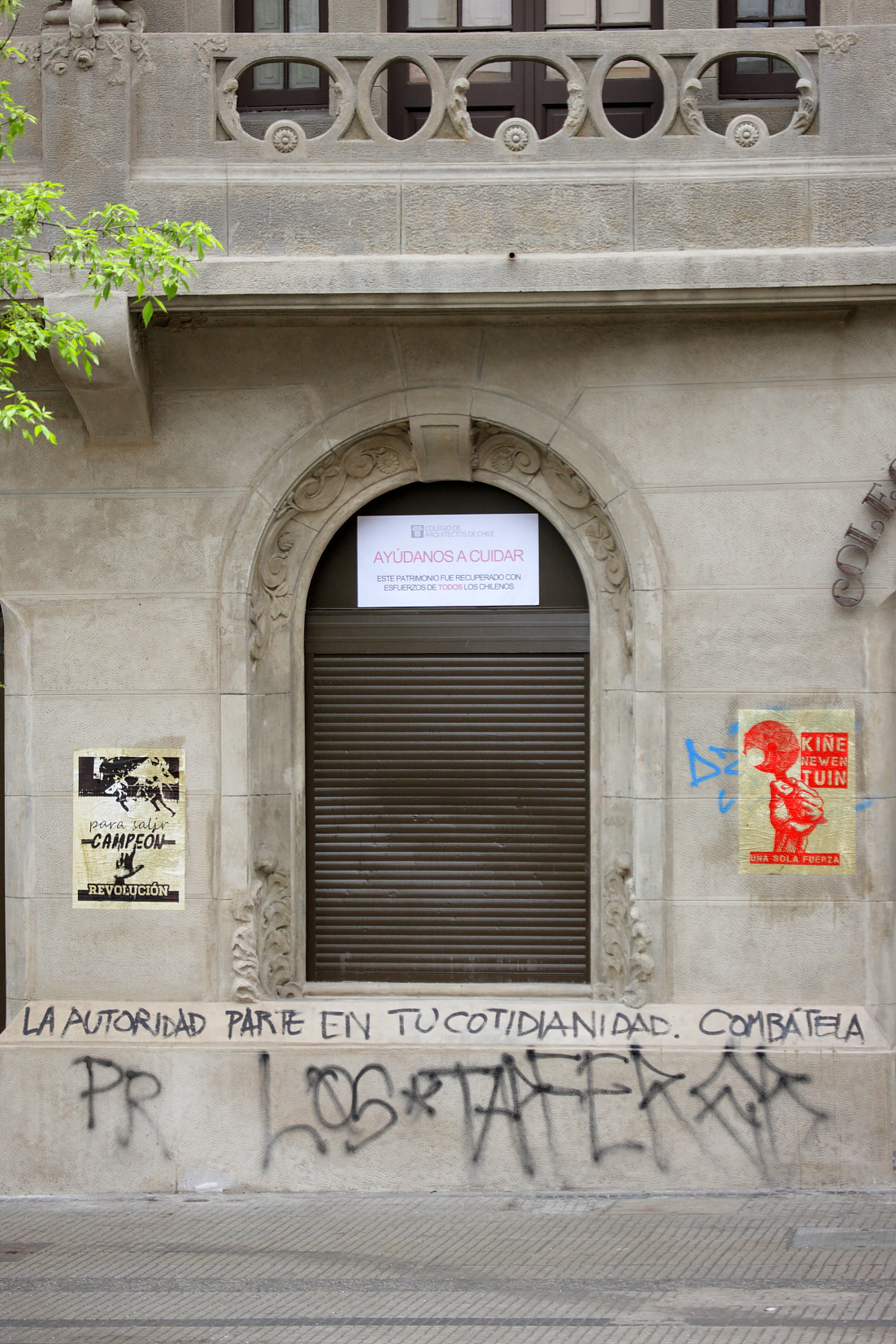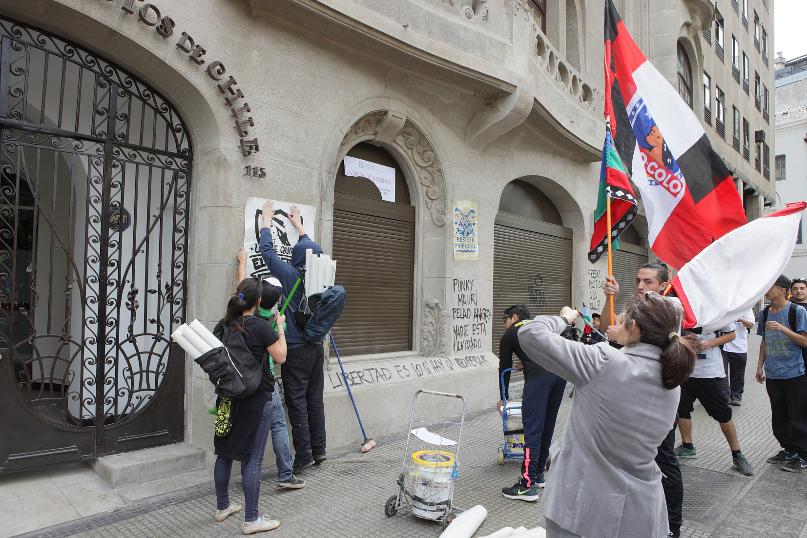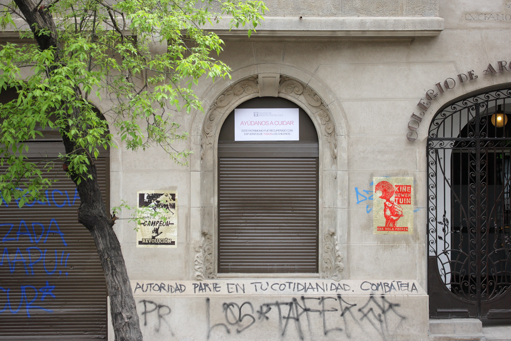 Sin embargo, cinco días después que fueran entregadas las obras y a plena luz de día, un grupo de personas que marchaban en el contexto de las celebraciones del Día de la Raza (12 de octubre), se encargó en pocos minutos de rayar, pegar carteles y denigrar lo que nos costó grandes energías, conocimientos y recursos, también de todos los chilenos pues gracias a la recaudación de impuestos esta recuperación fue posible. Muy comentados fueron los hechos, que quedaron registrados en las redes sociales.
