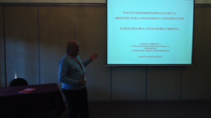 Junto con la bienvenida de los Presidentes Pilar Urrejola (Colegio de Arquitectos, ver), José Miguel Correa (Colegio de Constructores Civiles) y el Vicepresidente del Colegio de Ingenieros, Sergio Contreras, se realizó la charla del sociólogo, doctor en filosofía y líder de opinión, Max Colodro. A la ceremonia y al cóctel asistieron autoridades de la Municipalidad de Santa Cruz.