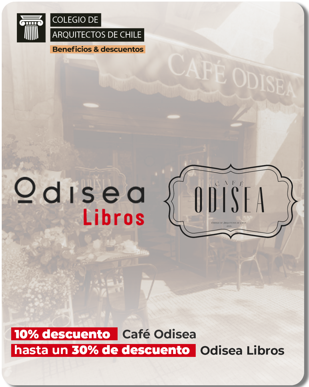 El Colegio de Arquitectos de Chile A.G. ha suscrito un convenio de colaboración con Odisea Libros y Café, que entrega beneficios exclusivos a sus colegiados y colegiadas. Esta alianza contempla descuentos permanentes en productos de librería y cafetería, tanto en tienda física como online. Asimismo, el convenio busca fomentar el acceso a contenidos relevantes y a espacios culturales, fortaleciendo el vínculo entre la arquitectura, la lectura y la vida urbana. En este contexto, Odisea Librería y Café ha sabido aportar significativamente con su presencia en el primer piso del edificio sede nacional del Colegio de Arquitectos de Chile.