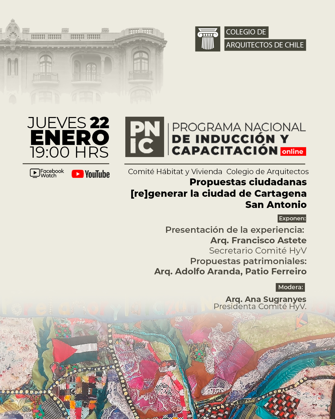 Las sesiones serán transmitidas en vivo a través de YouTube en www.youtube.com/ColegiodeArquitectosdeChile y en Facebook Live en www.facebook.com/colegioarq.