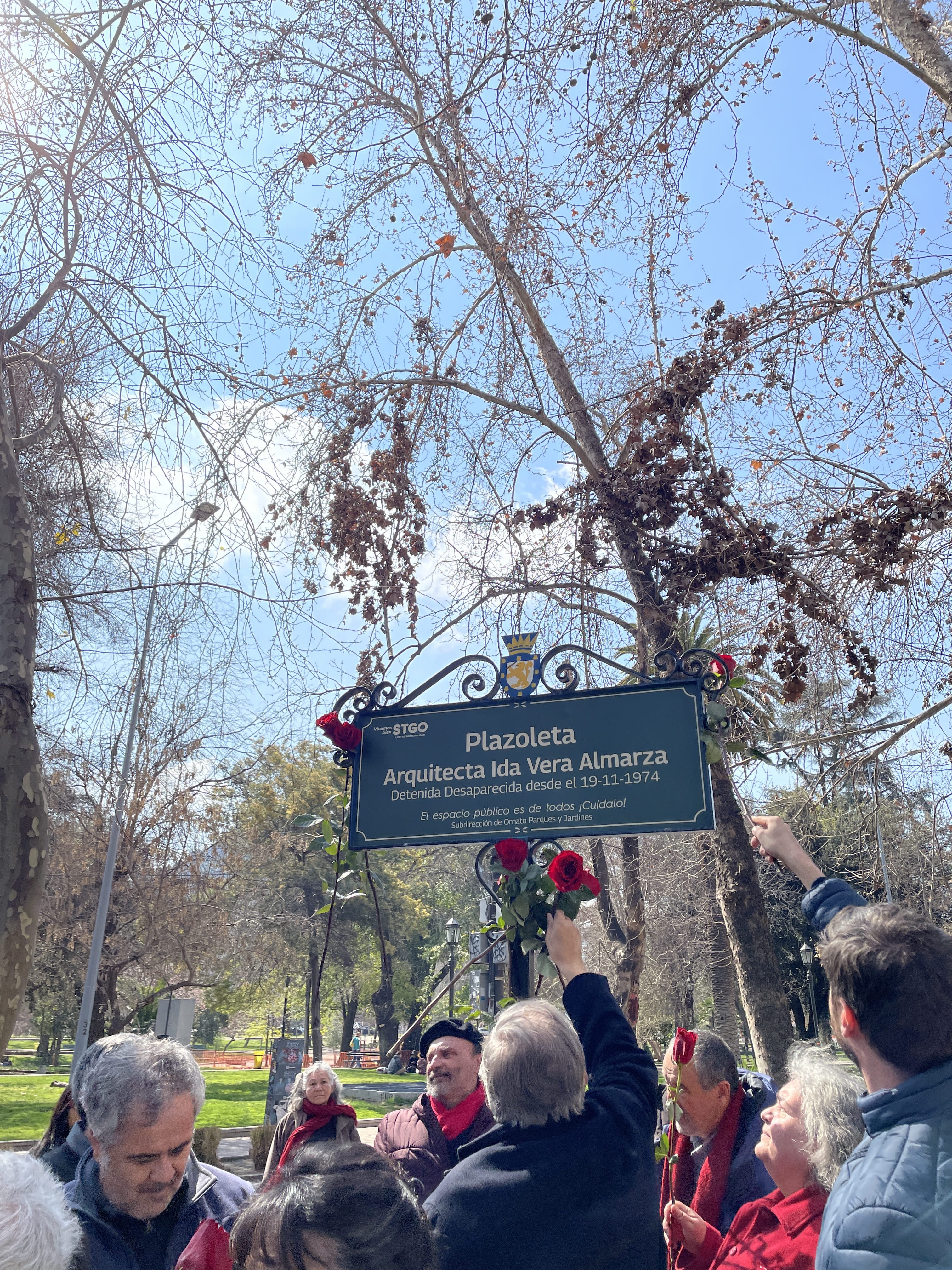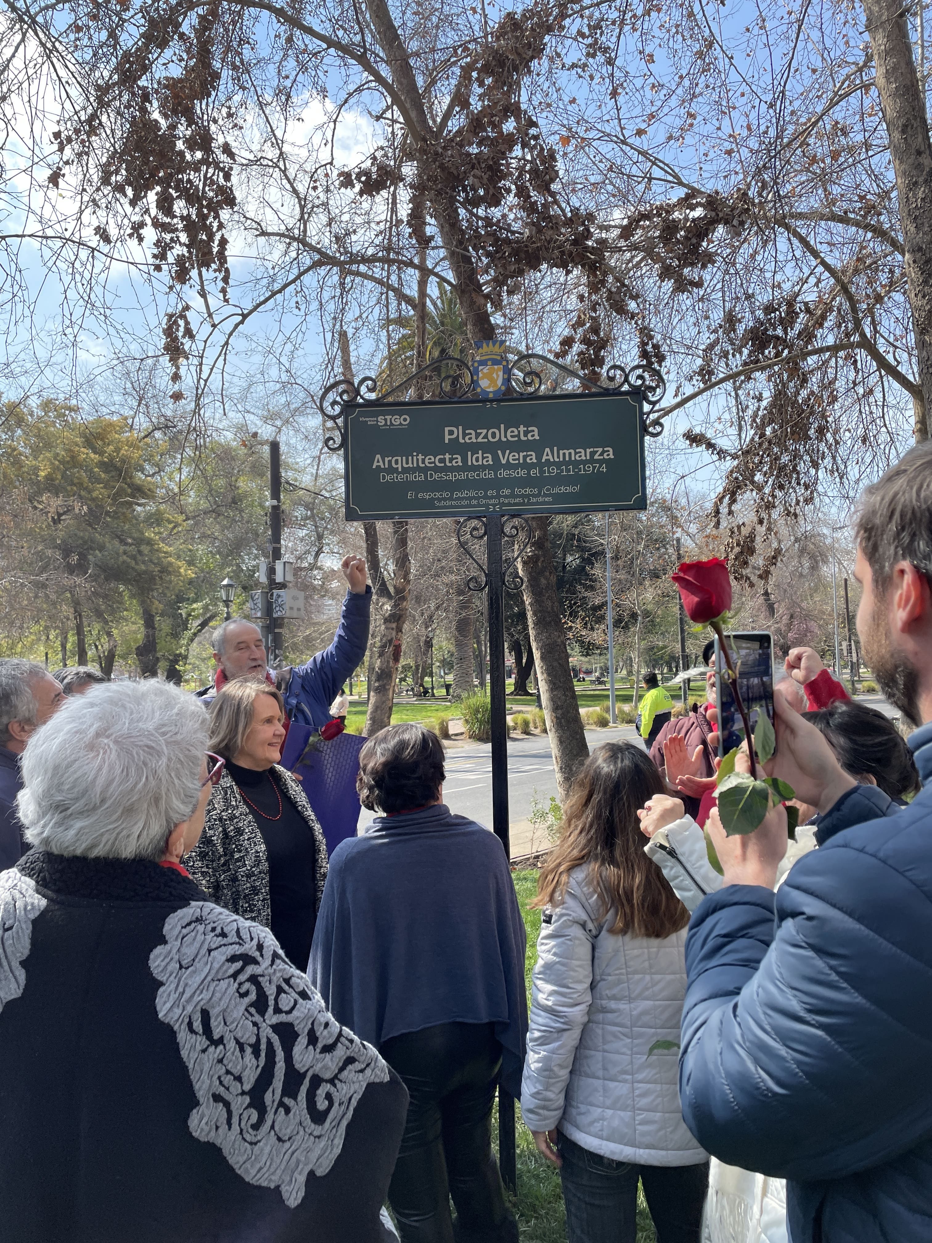 Agradecemos a nuestro Comité de Derechos Humanos y Ciudadanos, a la Ilustre Municipalidad de Santiago, a la familia de Ida Vera Almarza y a la múltiples agrupaciones que nos acompañaron en este trayecto por el valioso acto de memoria que construimos para honrar a la arquitecta de la Universidad de Chile, detenida a los 31 años, el 19 de noviembre de 1974.