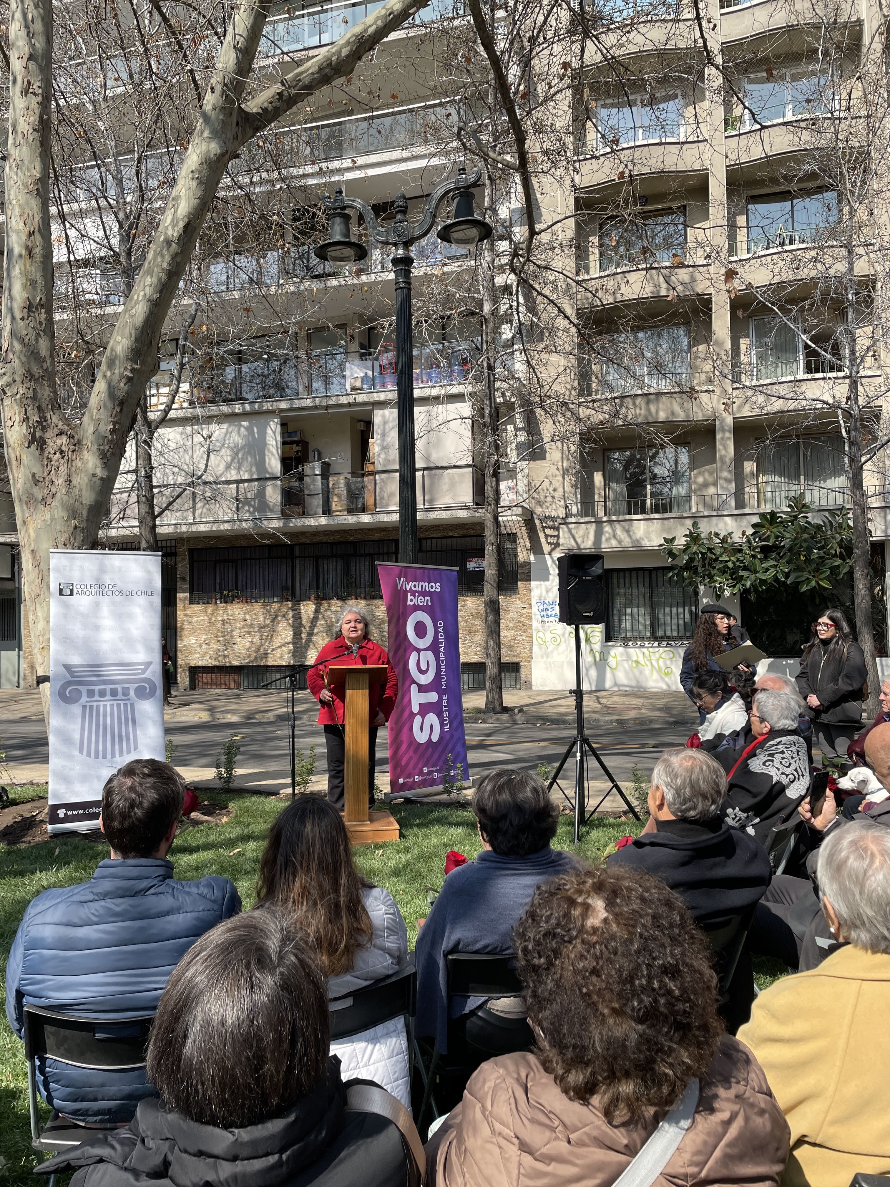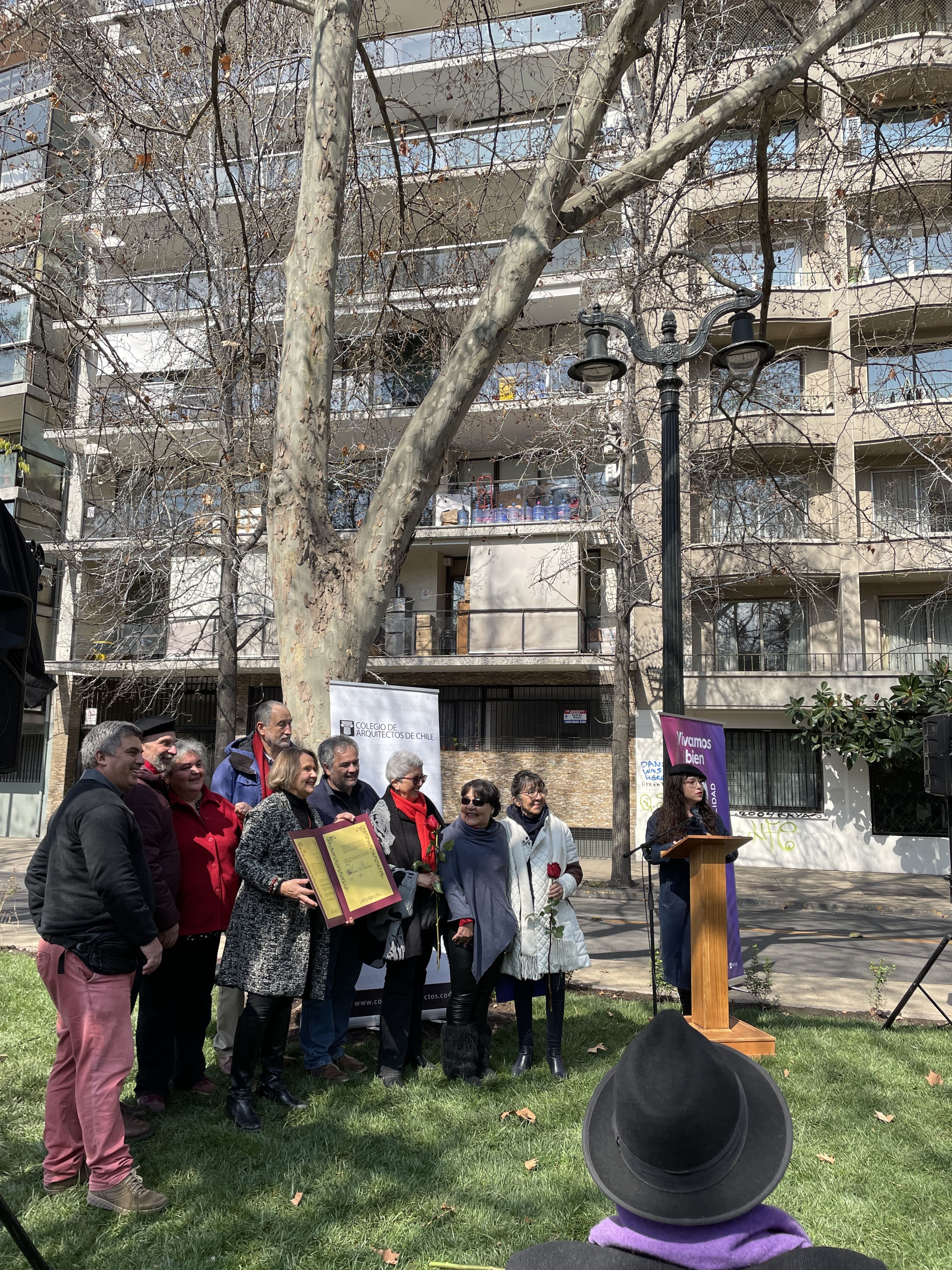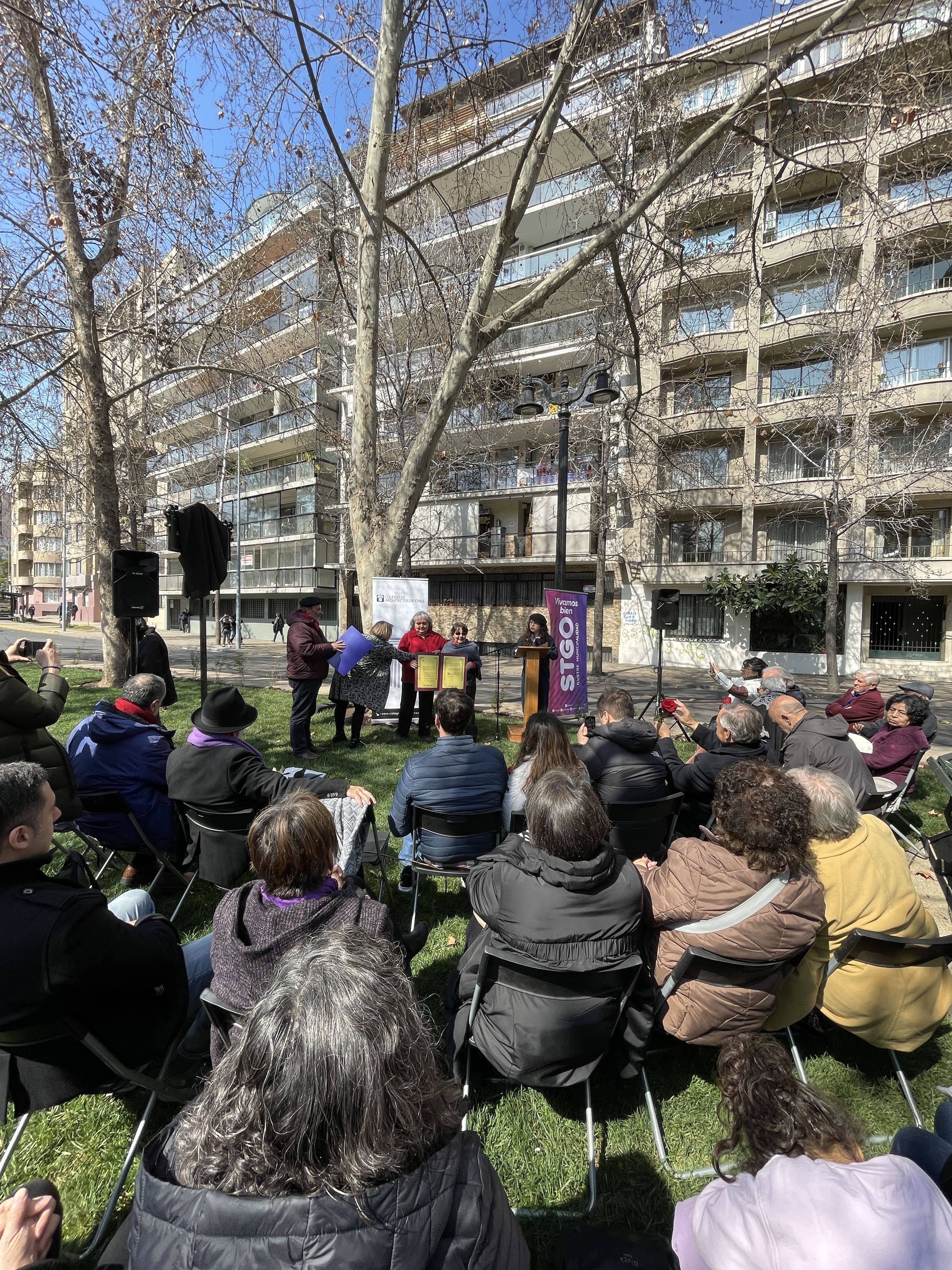 La instancia reunió a la familia de Ida Vera Almarza con diversas autoridades del Directorio Nacional del Colegio de Arquitectos de Chile, la Ilustre Municipalidad de Santiago, el Consejo Comunal de Organizaciones de la Sociedad Civil (COSOC) y la Junta de Vecinos del Parque Forestal.