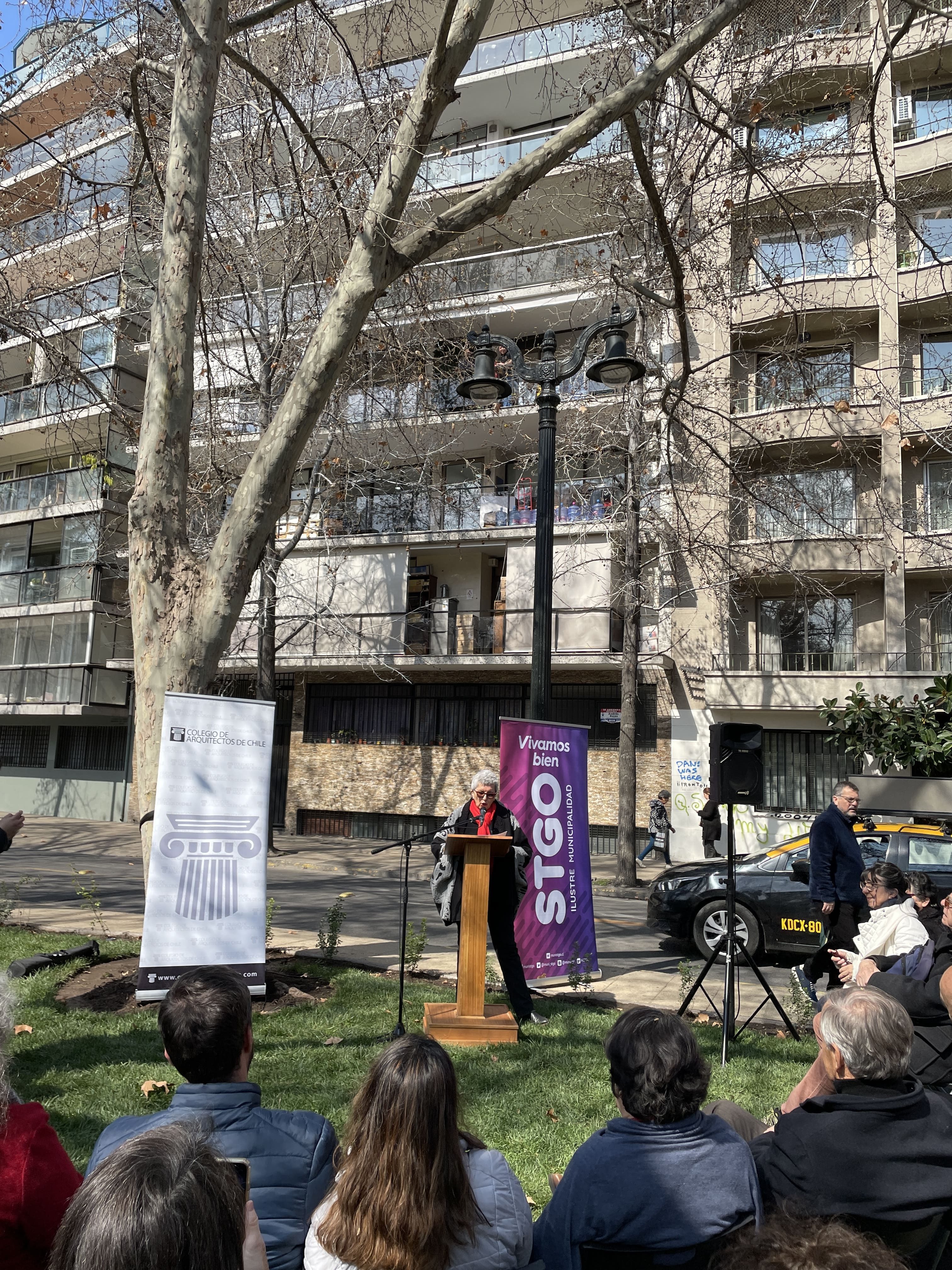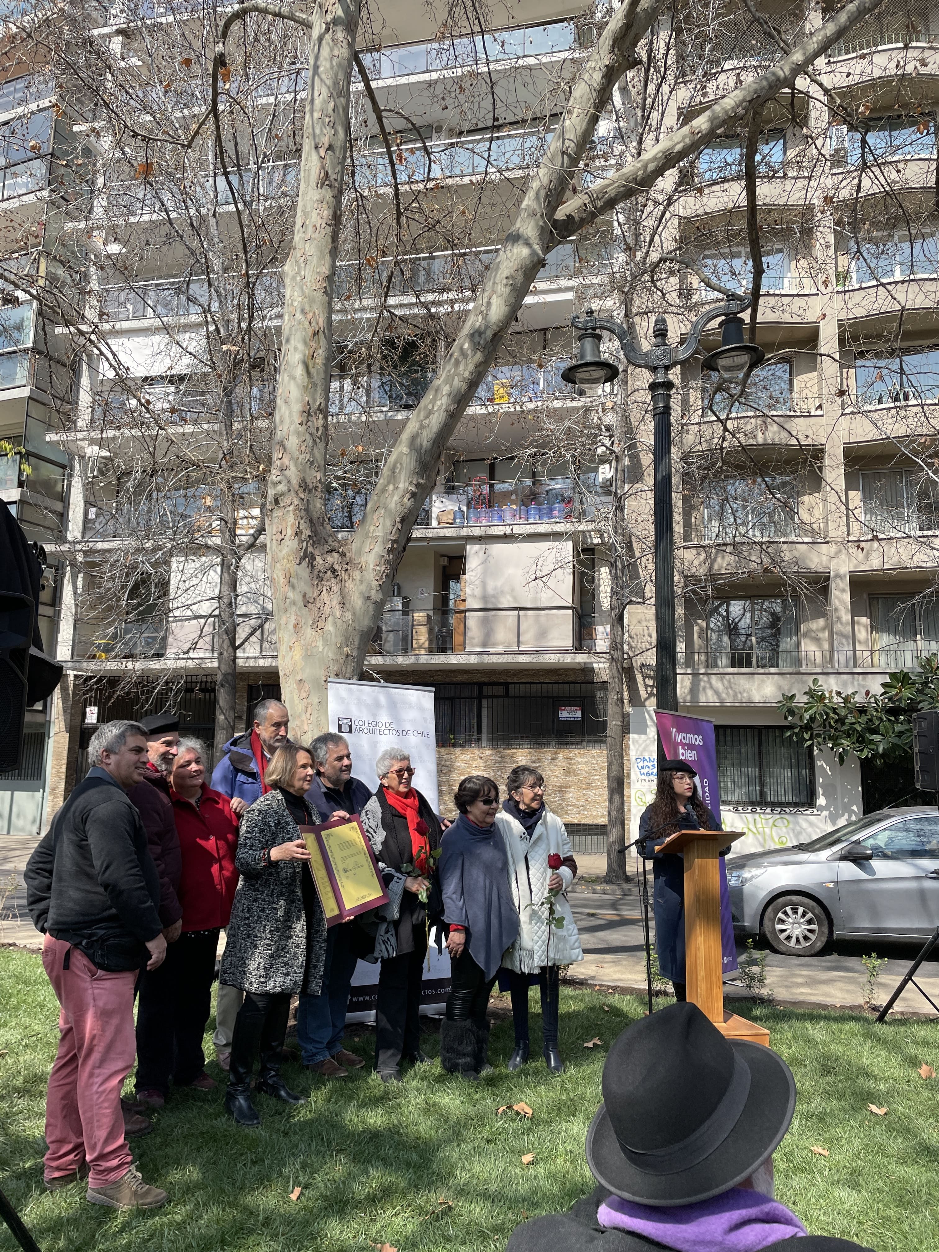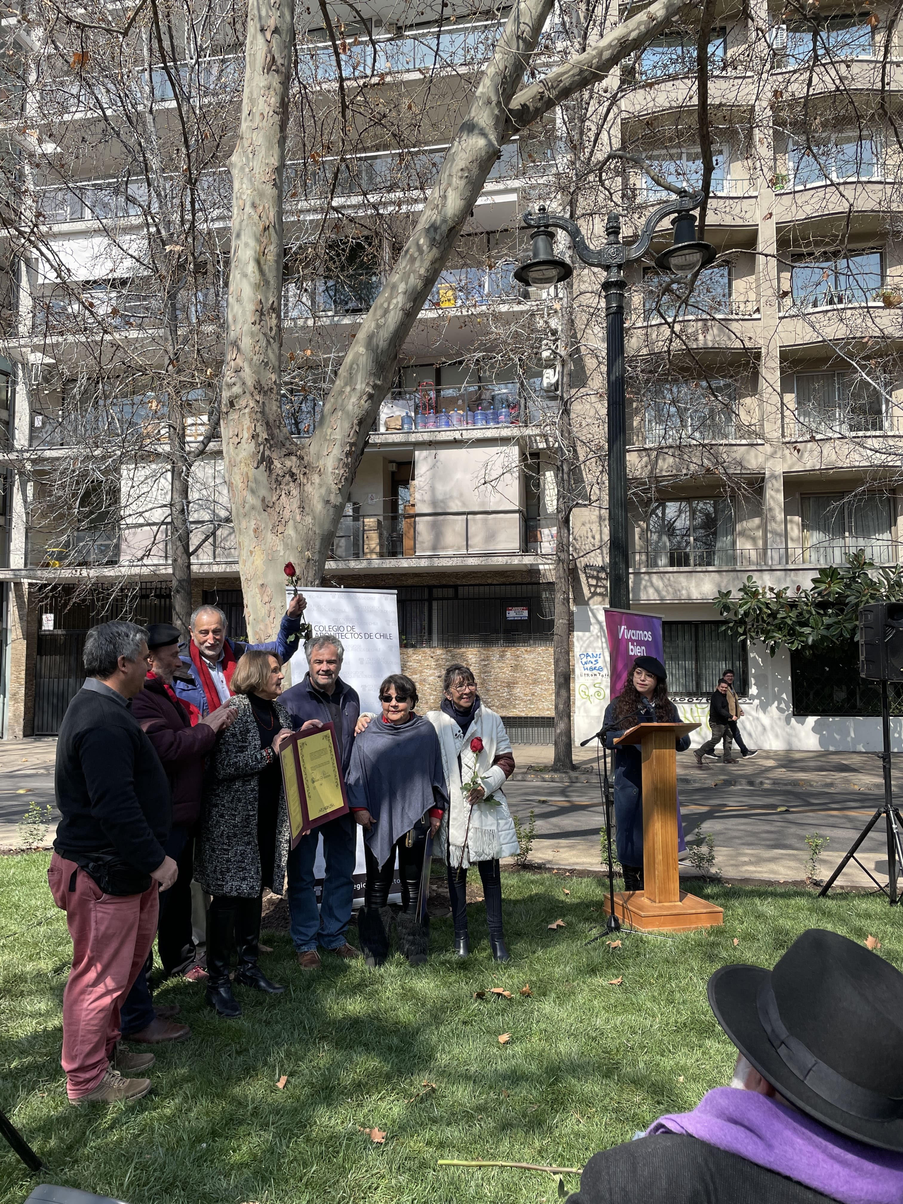 La instancia reunió a la familia de Ida Vera Almarza con diversas autoridades del Directorio Nacional del Colegio de Arquitectos de Chile, la Ilustre Municipalidad de Santiago, el Consejo Comunal de Organizaciones de la Sociedad Civil (COSOC) y la Junta de Vecinos del Parque Forestal.