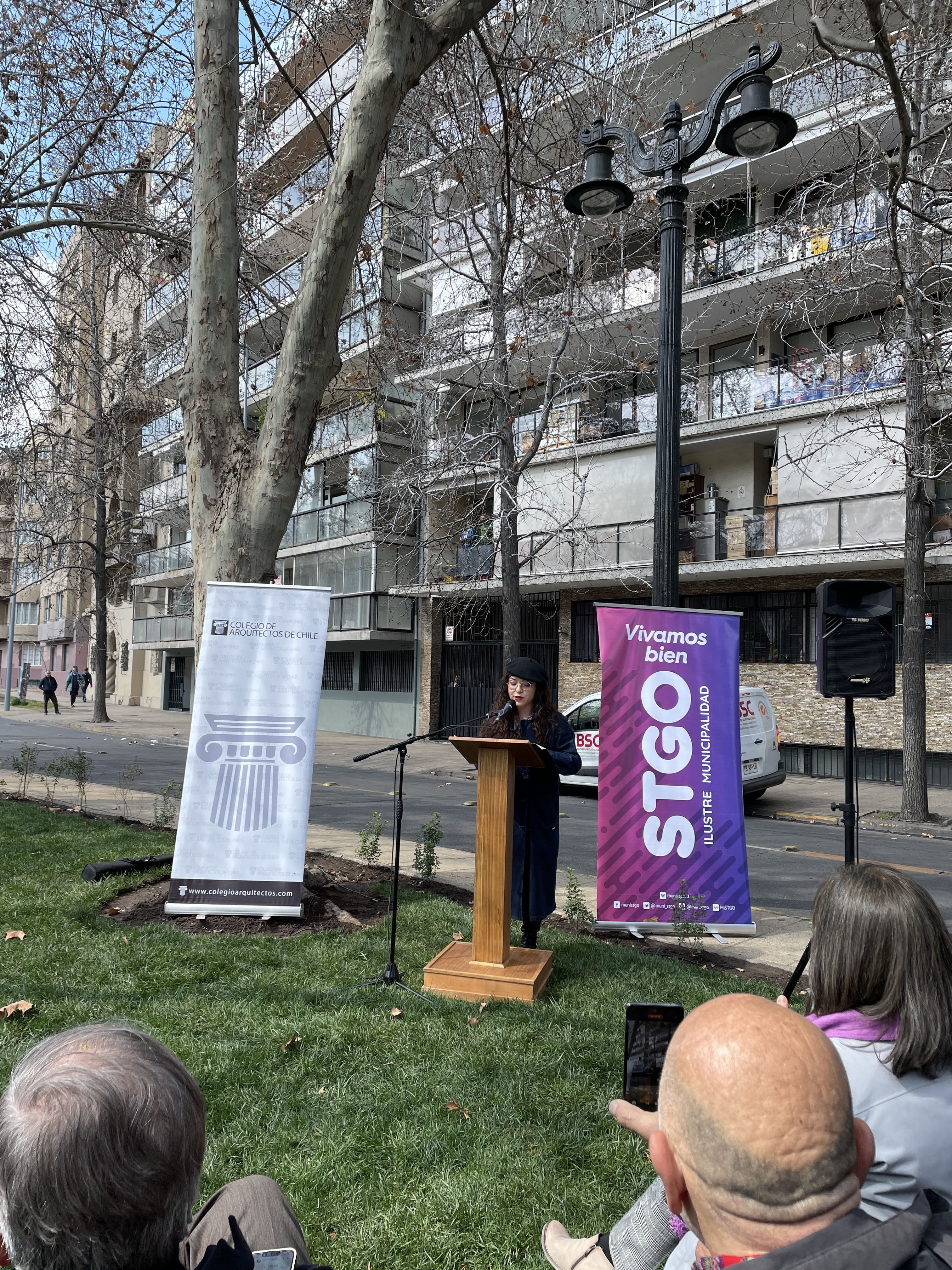 En la ceremonia, nuestra presidenta nacional, Beatriz Buccicardi, narró el largo proceso previo a la inauguración de la plazoleta y cómo fue central el diálogo, la participación ciudadana y la memoria para concretar un largo anhelo de las y los arquitectos de Chile.